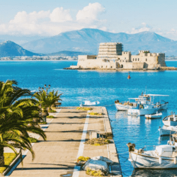 Στη συνέχεια φτάνουμε στο Ναύπλιο, μια όμορφη πόλη και την πρώτη πρωτεύουσα της Ελλάδας. Εξερευνήστε το ενετικό κάστρο του Παλαμηδίου και θαυμάστε την εκπληκτική θέα. Επισκεφθείτε την ακρόπολη του Ναυπλίου και ανακαλύψτε την πόλη του Ναυπλίου με τον αρχαιολόγο/ιστορικό συνοδό σας.