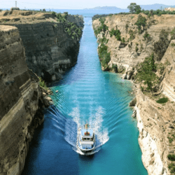 Κάνουμε μια στάση στο κανάλι της Κορίνθου, ένα από τα λίγα τεχνητά κανάλια του κόσμου, που κατασκευάστηκε το 1894 όπου μπορείτε να τραβήξετε φωτογραφίες και να δείτε την εντυπωσιακή θέα.