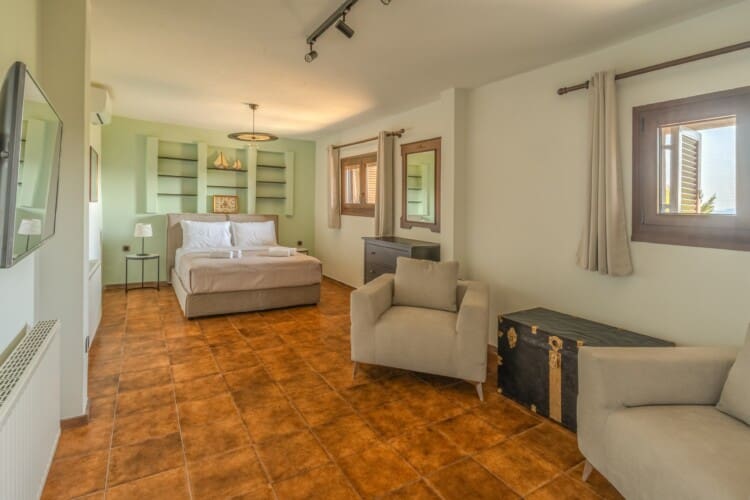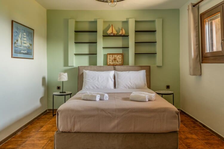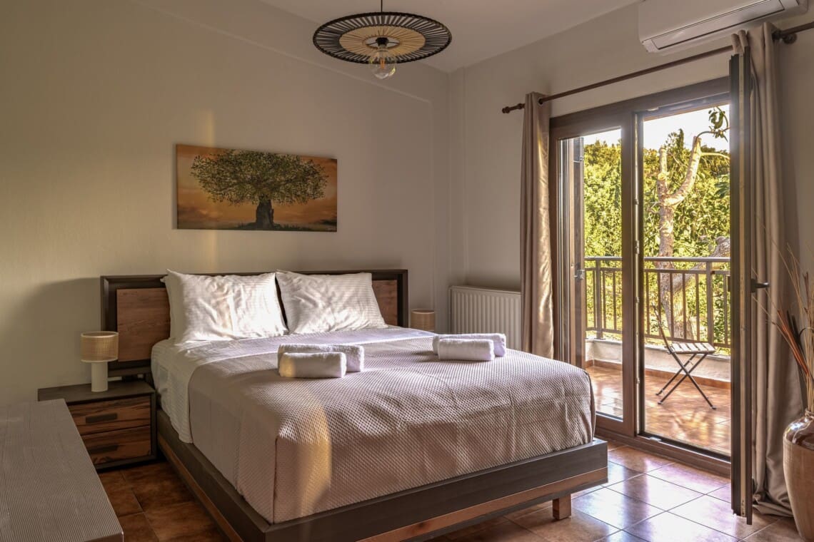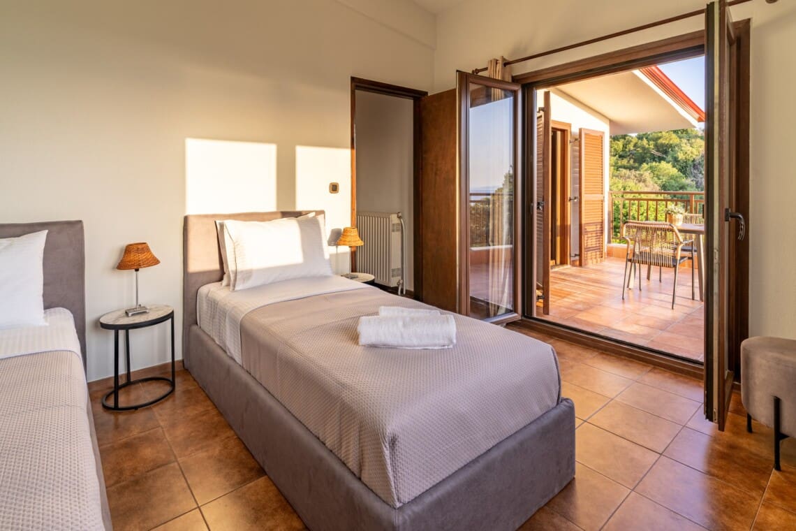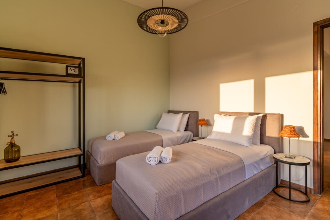 Η βίλα διαθέτει 4 ευρύχωρα υπνοδωμάτια. Το πρώτο και το δεύτερο υπνοδωμάτιο έχουν ένα άνετο queen-size κρεβάτι και ιδιωτικό μπαλκόνι με έπιπλα εξωτερικού χώρου, ιδανικό για να απολαύσετε τον πρωινό σας καφέ ή ένα βραδινό ποτό. Το τρίτο υπνοδωμάτιο έχει δύο μονά κρεβάτια και προσφέρει υπέροχη θέα στον κήπο. Το τέταρτο υπνοδωμάτιο είναι αρκετά ευέλικτο με ένα queen-size κρεβάτι και δύο μονά κρεβάτια, ιδανικό για μεγαλύτερες οικογένειες ή παρέες.