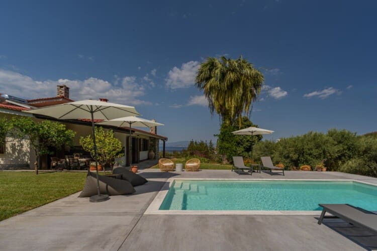 Enjoy the beautiful surroundings, including olive and citrus trees and fresh vegetables from the garden. From the private pool to the fully-equipped kitchen and cozy balconies, we have everything you need for a comfortable stay. The villa has a trampoline for our little friends and Disney plus channel. Also the villa has an outdoor shower.