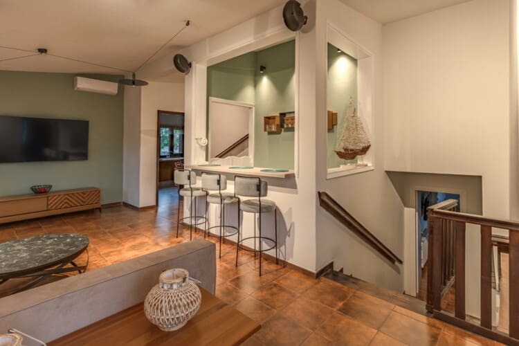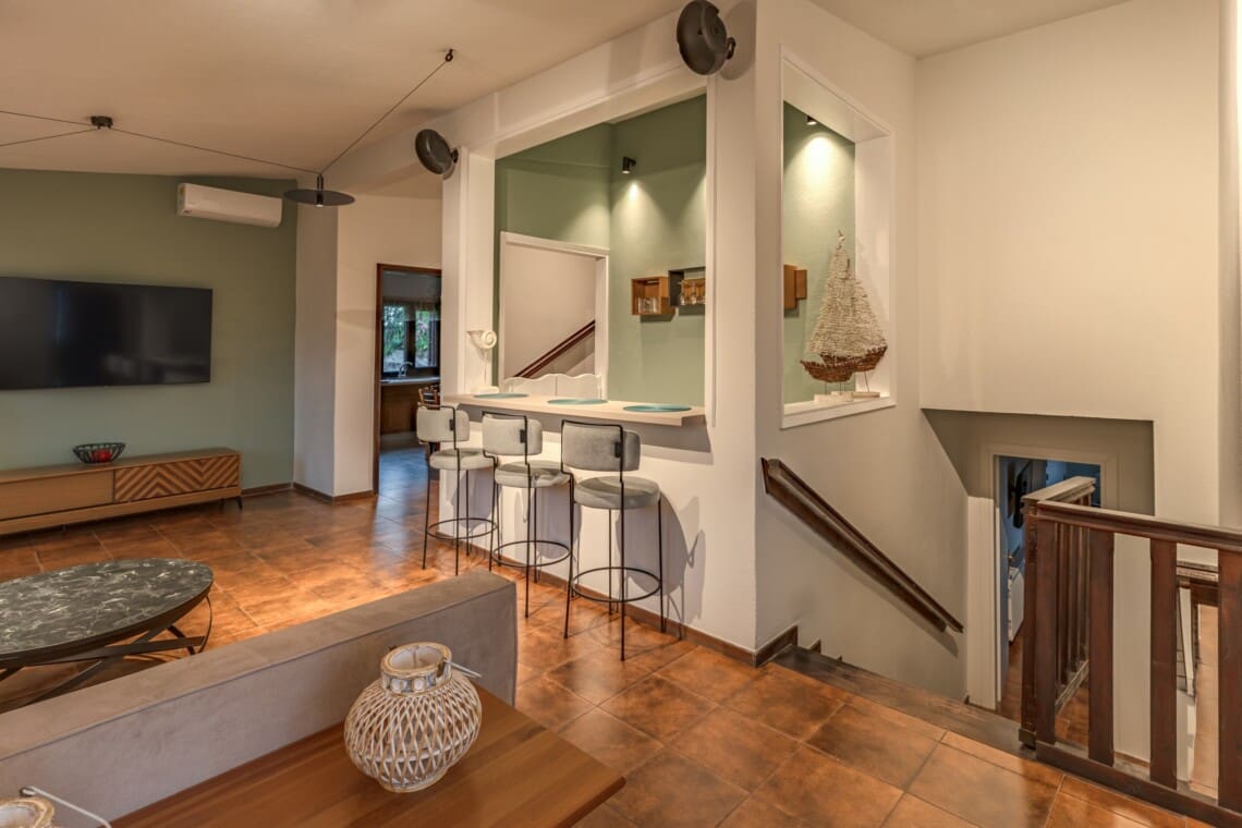 There are 2 modern bathrooms with showers, ensuring everyone has plenty of space and privacy. Our big private kitchen is fully equipped with all the appliances you’ll need to prepare delicious meals during your stay. Also, the villa has an outdoor kitchen with gas.