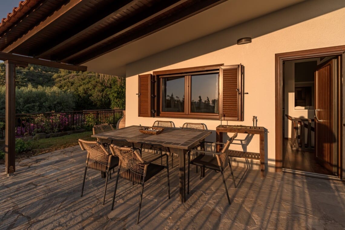 Απολαύστε τη βεράντα με έπιπλα εξωτερικού χώρου, όπου μπορείτε να χαλαρώσετε και να δειπνήσετε στο ύπαιθρο. Η βίλα μας περιβάλλεται από ελαιόδεντρα, εσπεριδοειδή, έναν μικρό αμπελώνα και έναν μεγάλο λαχανόκηπο. Μη διστάσετε να μαζέψετε φρέσκα αγγούρια, ντομάτες, κολοκύθες, μελιτζάνες και πιπεριές κατευθείαν από τον κήπο!