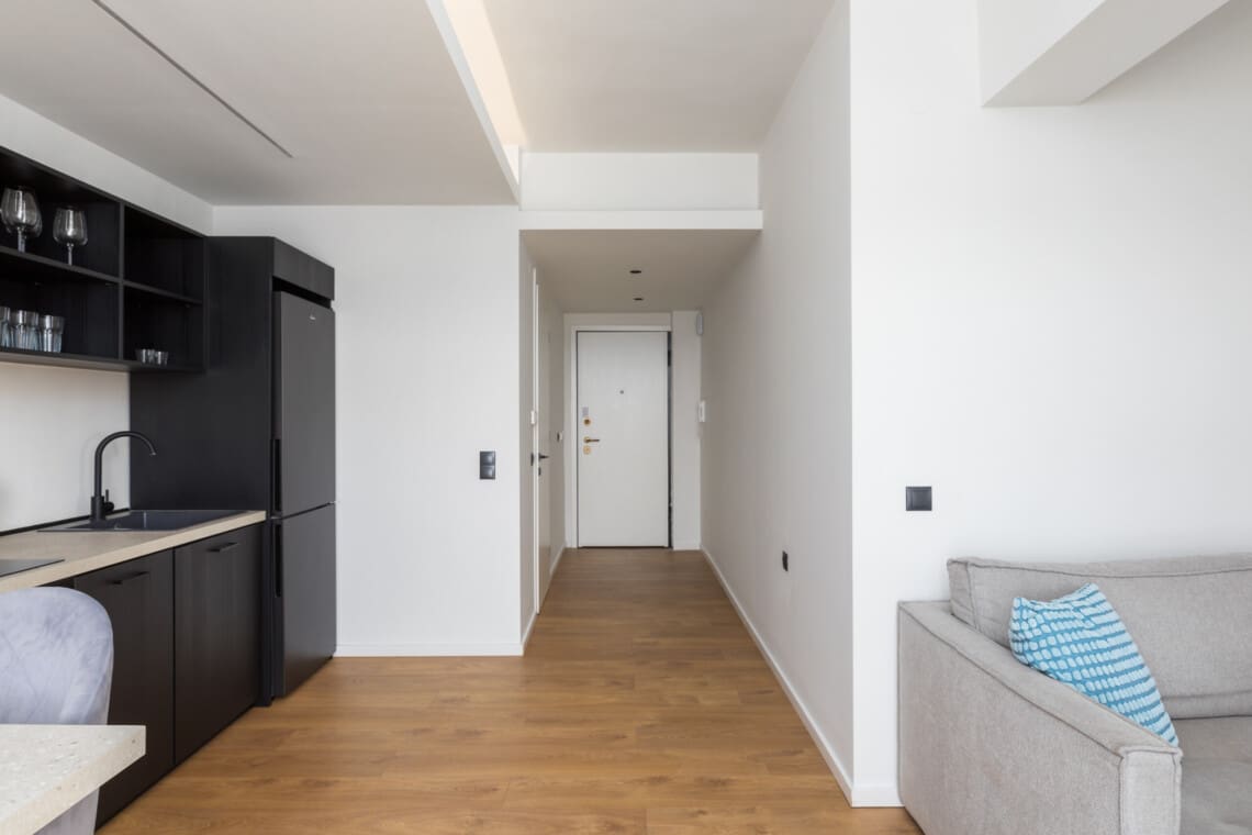 Each of our thoughtfully designed apartments features a spacious living room where you can unwind after a day of exploring the city. You’ll find a private, fully-equipped kitchen ready to inspire your culinary creativity, whether you’re preparing a quick breakfast or a gourmet dinner. The bathroom, complete with a shower, ensures a refreshing start or end to your day.