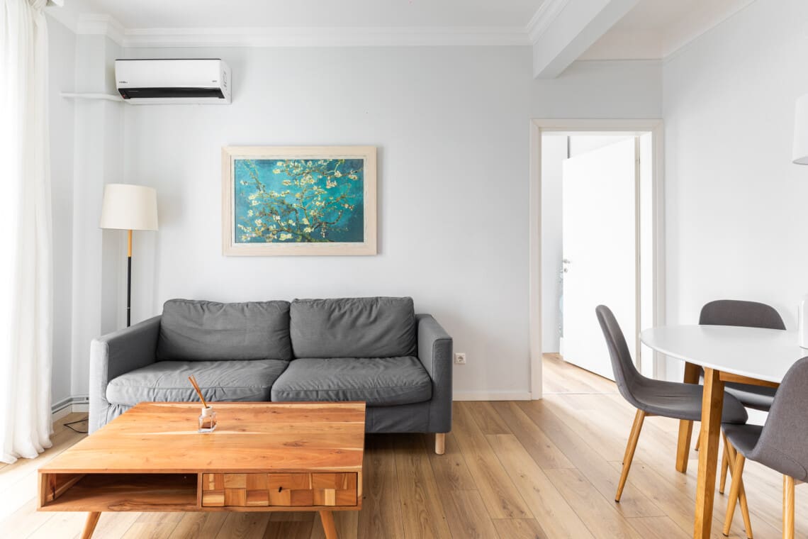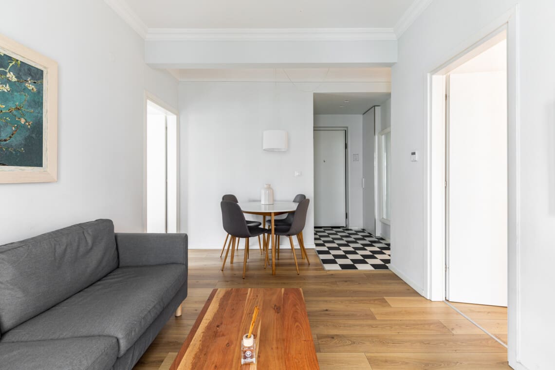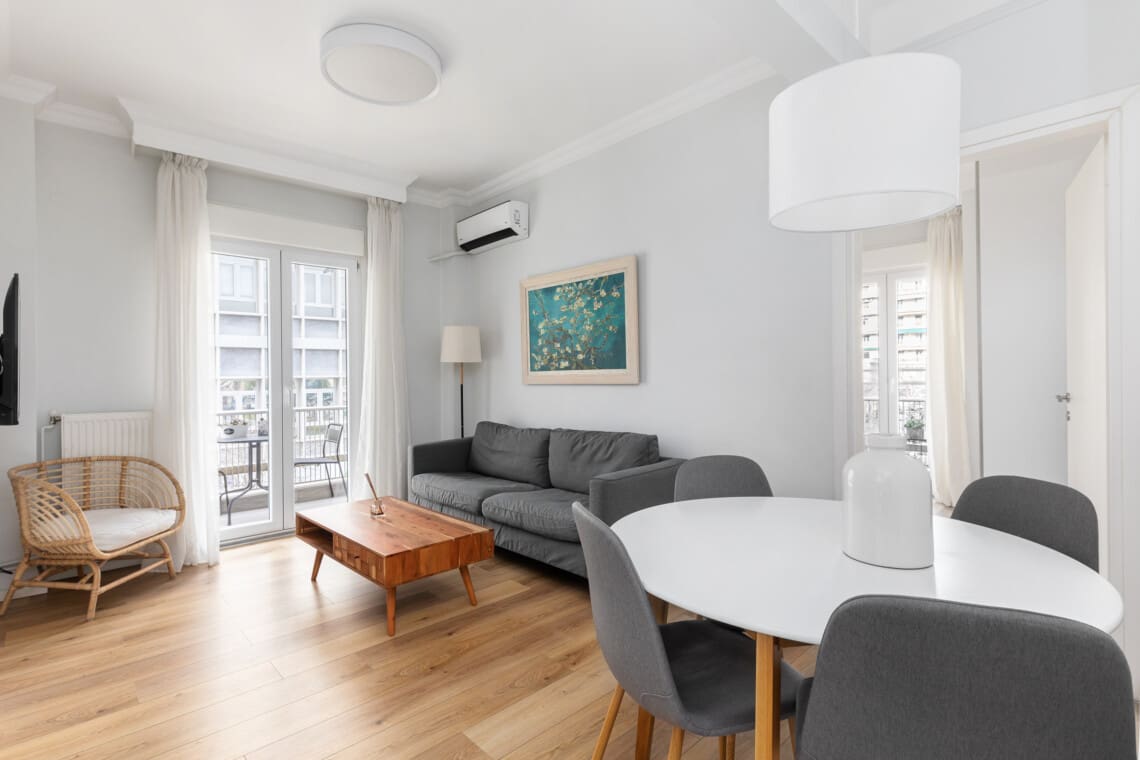 Καθώς μπαίνετε στο διαμέρισμά, παρατηρείτε αμέσως τον ευάερο, μινιμαλιστικό σχεδιασμό, που δίνει μια αίσθηση ηρεμίας . Με απαλά παστέλ χρώματα και άπλετο φυσικό φως, το διαμέρισμά μας είναι το ιδανικό μέρος για να χαλαρώσετε μετά από μια μέρα εξερεύνησης στην πόλη.