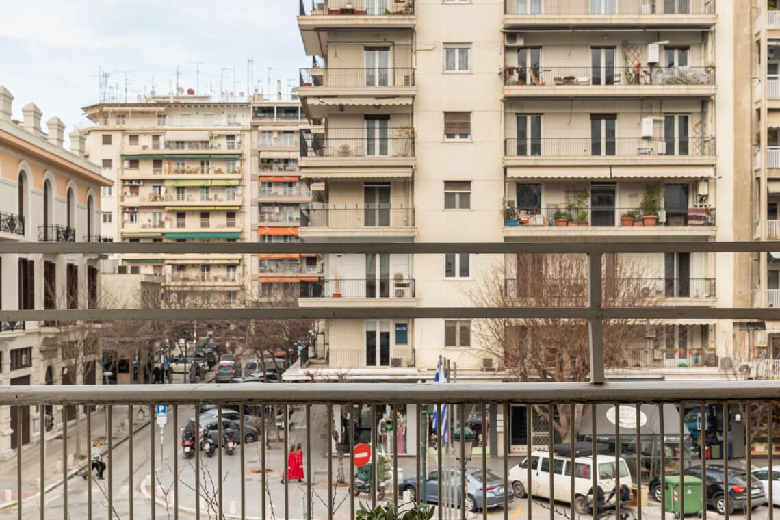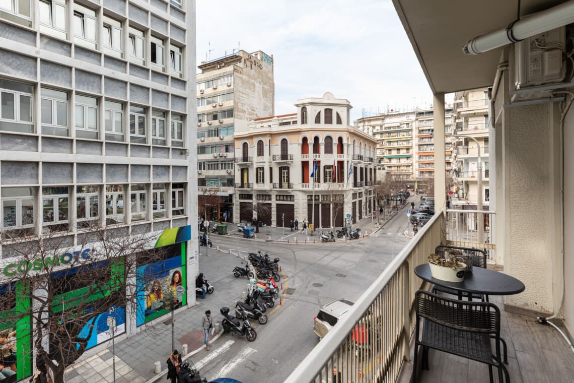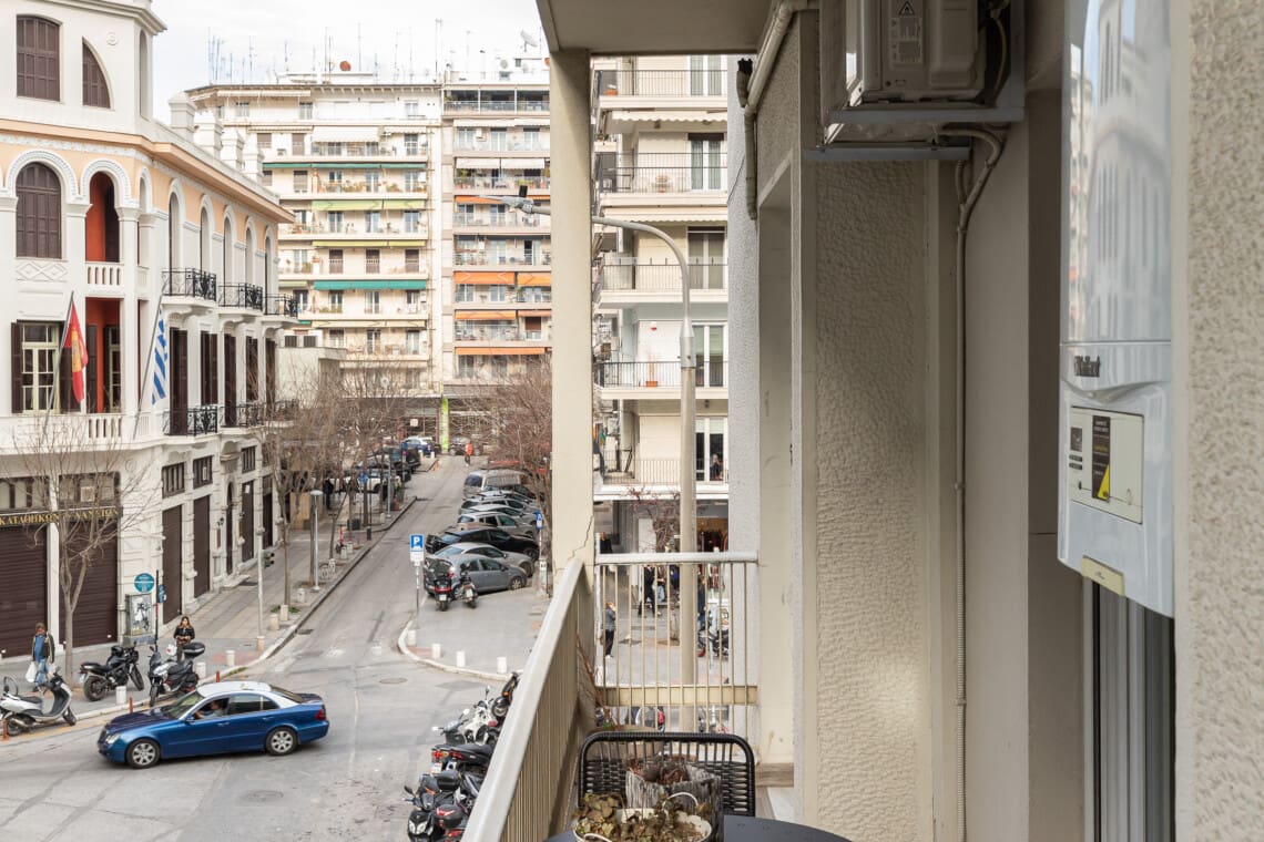 Ένα από τα κυριότερα σημεία του διαμερίσματός μας είναι το μπαλκόνι με θέα στο δρόμο, όπου μπορείτε να απολαύσετε τον πρωινό σας καφέ, να διαβάσετε ένα βιβλίο ή απλά να απολαύσετε τη ζωντανή ατμόσφαιρα της Θεσσαλονίκης.