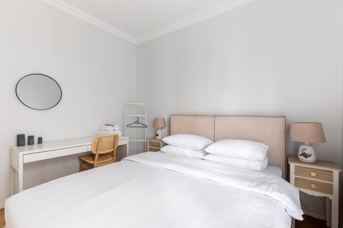 Το διαμέρισμά μας διαθέτει δύο ευρύχωρα υπνοδωμάτια, το καθένα επιπλωμένο με ένα βελούδινο Queen-size κρεβάτι και όλες τις ανέσεις που θα χρειαστείτε για να απολαύσετε έναν ξεκούραστο βραδινό ύπνο. Είτε ταξιδεύετε με την οικογένειά σας είτε με την παρέα σας, το διαμέρισμά μας είναι ιδανικό για εσάς.
