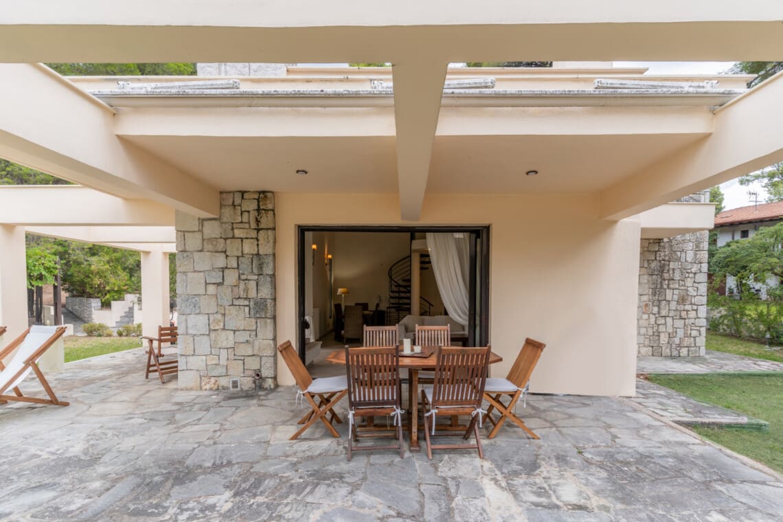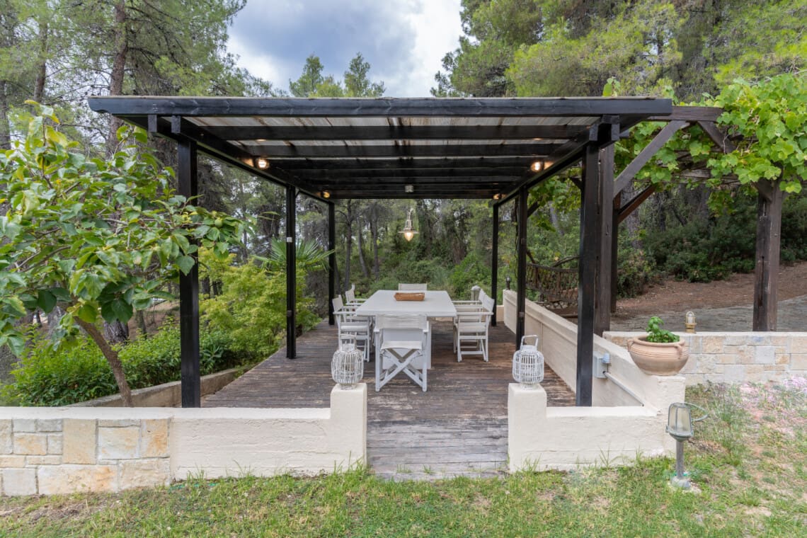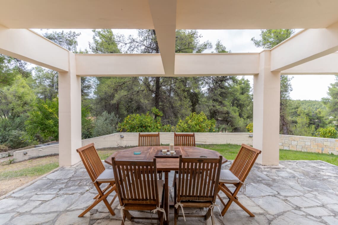 Αν είστε λάτρης της υπαίθρου, θα ενθουσιαστείτε με την ευρύχωρη βεράντα μας που είναι ιδανική για φαγητό και χαλάρωση. Η βεράντα διαθέτει ένα άνετο καθιστικό, καθώς και ένα εντυπωσιακό κιόσκι με μια άλλη τραπεζαρία, όπου μπορείτε να απολαύσετε νόστιμη ελληνική κουζίνα κάτω από τον ήλιο.