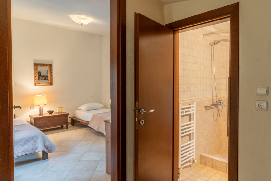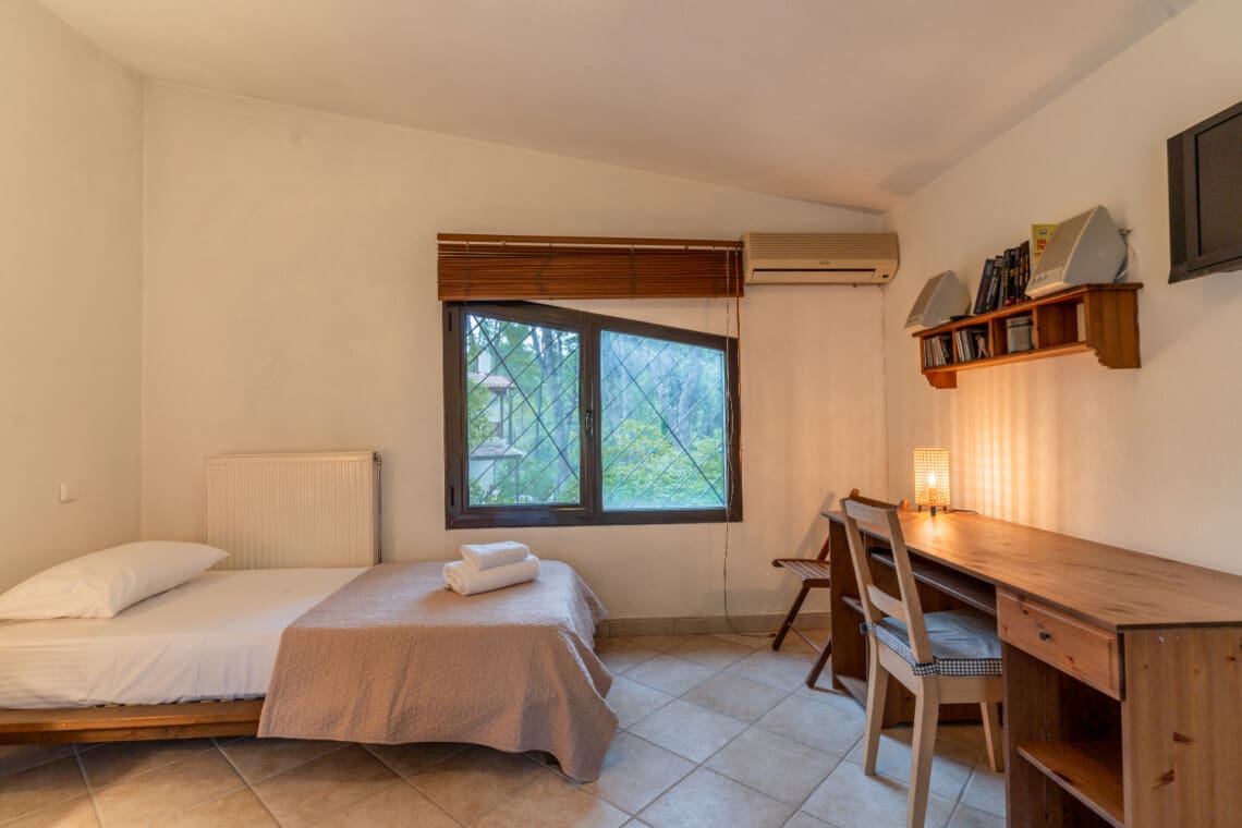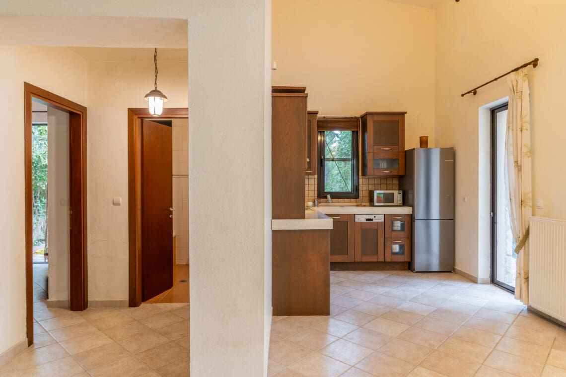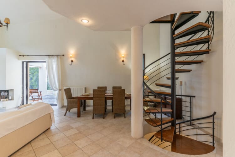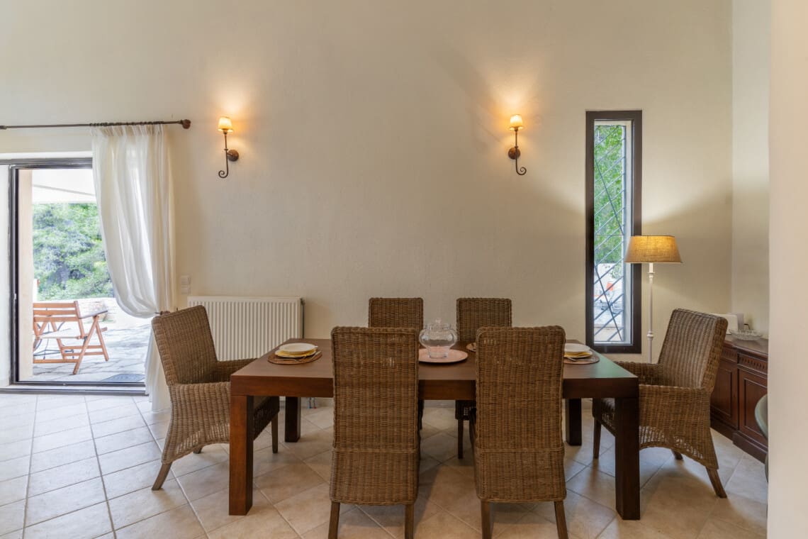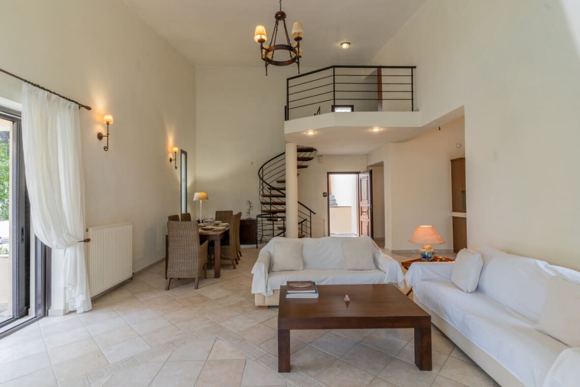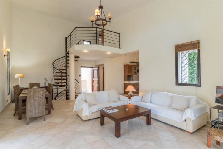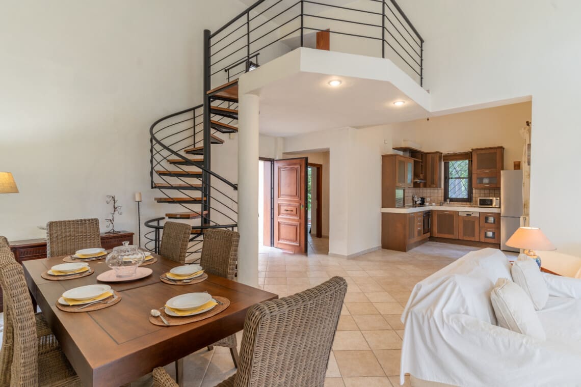 Μόλις μπείτε στη βίλα μας, θα μαγευτείτε από τη μεγαλοπρέπεια του ευρύχωρου καθιστικού, με ψηλό ταβάνι και ανεμιστήρα οροφής που κρατά το δωμάτιο δροσερό και αεράτο. Το σαλόνι ανοίγει σε μια πλήρως εξοπλισμένη κουζίνα και τραπεζαρία, ιδανική για την προετοιμασία και την απόλαυση σπιτικών γευμάτων. Στο ισόγειο, θα βρείτε επίσης ένα άνετο υπνοδωμάτιο με κρεβάτι queen size και ένα μπάνιο.