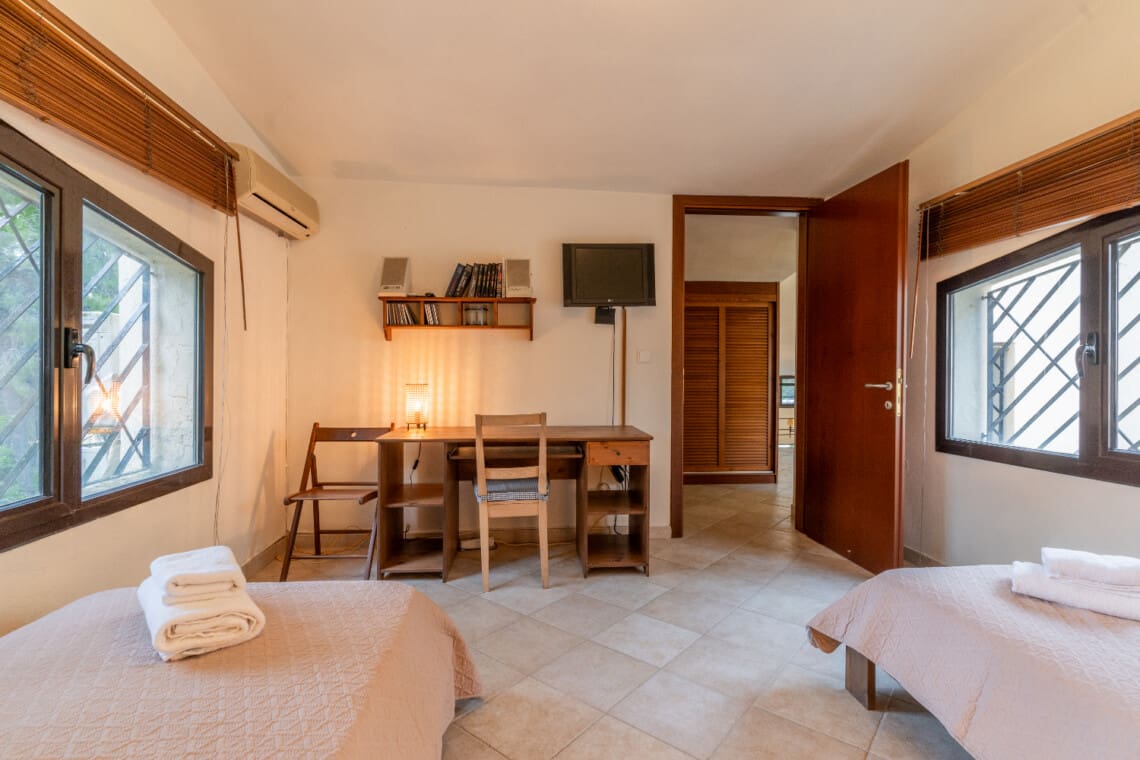 Ανεβείτε τις σκάλες στον πρώτο όροφο όπου θα σας καλωσορίσει ένας όμορφος ημιώροφος με θέα στο ισόγειο. Ο πρώτος όροφος διαθέτει επίσης ένα άνετο υπνοδωμάτιο με δύο μονά κρεβάτια και ένα γραφείο σε περίπτωση που χρειαστεί να εργαστείτε. Ένα ακόμη λαμπερό μπάνιο ολοκληρώνει αυτόν τον όροφο.