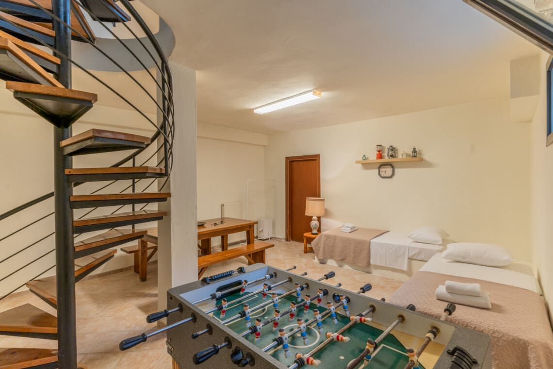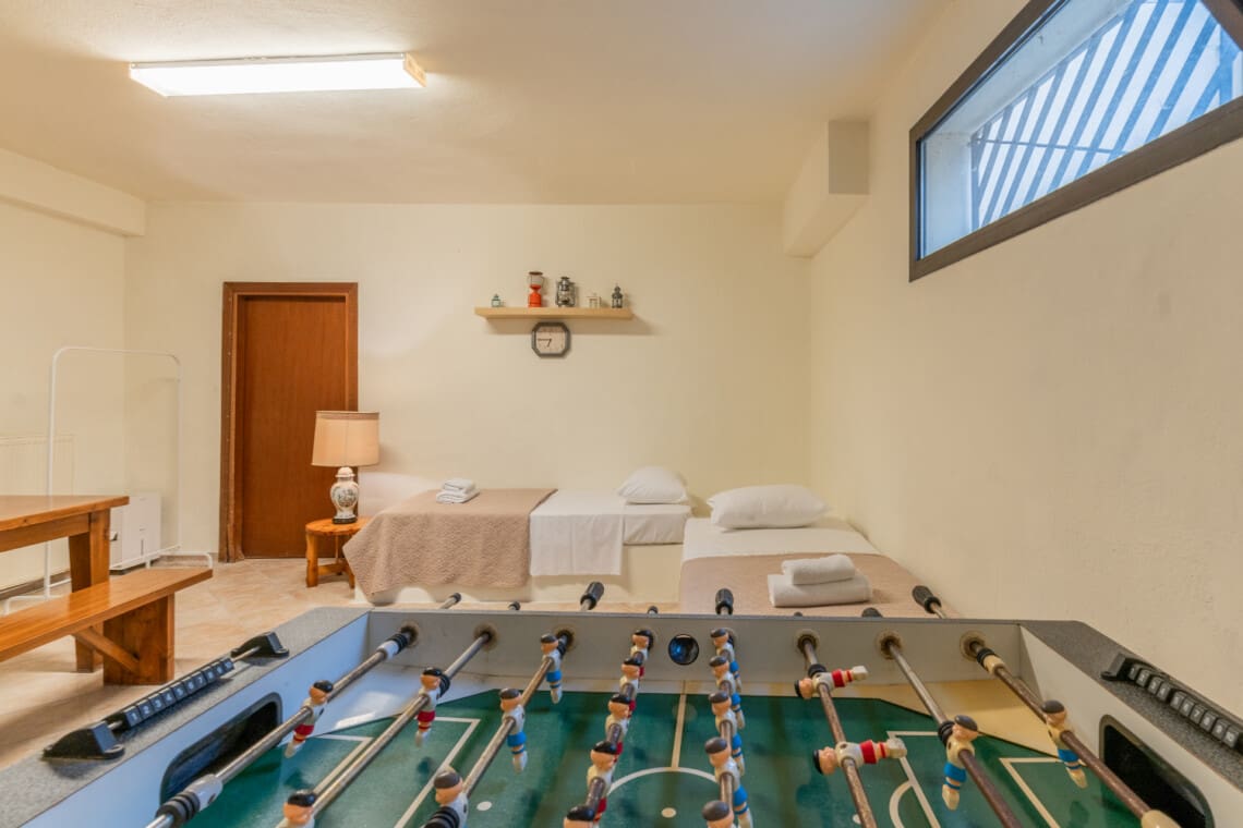 Για μια μοναδική εμπειρία, κατεβείτε στον -1 όροφο όπου θα βρείτε ένα διασκεδαστικό υπνοδωμάτιο/playroom ιδανικό για τα παιδιά (και μεγάλους!). Είναι πλήρης με δύο μονά κρεβάτια, ένα ποδοσφαιρικό τραπέζι και ένα τραπέζι πικνίκ όπου τα μικρά μπορούν να απολαύσουν γεύματα και σνακ.
