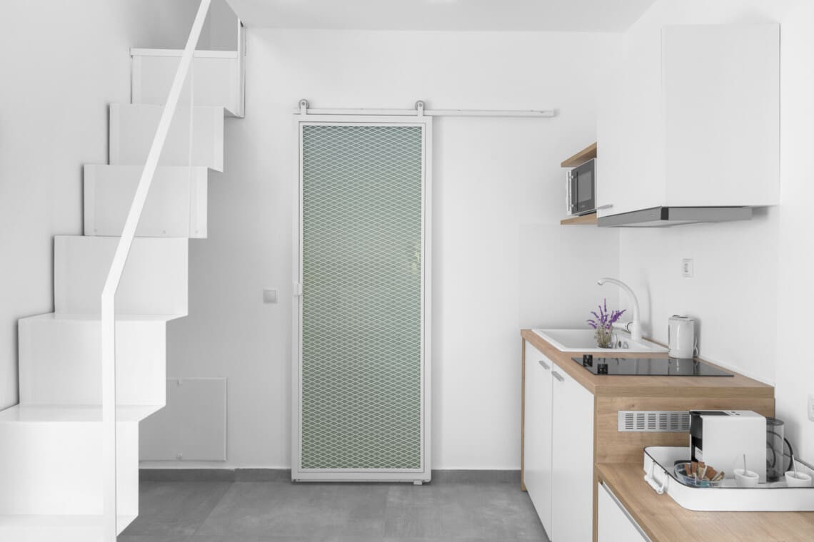 Ένα πρόσφατα κατασκευασμένο πλήρως επιπλωμένο, φωτεινό, ευάερο και άνετο στούντιο με 1 δωμάτιο, 1 μικρή σοφίτα και μεγάλη βεράντα. Το στούντιο διαθέτει αποθηκευτικούς χώρους (συρτάρια), κρεμάστρα, διπλό κρεβάτι και μεγάλο μονό κρεβάτι σοφίτας μεγέθους ενηλίκων. Υπάρχει μια πλήρως λειτουργική κουζίνα με όλο τον απαραίτητο εξοπλισμό: σερβίτσια, μαχαιροπίρουνα, γυάλινα σκεύη, καφετιέρα Nespresso (με συμπληρωματικές κάψουλες Nespreso), τοστιέρα, βραστήρα, ψυγείο και φούρνο μικροκυμάτων.