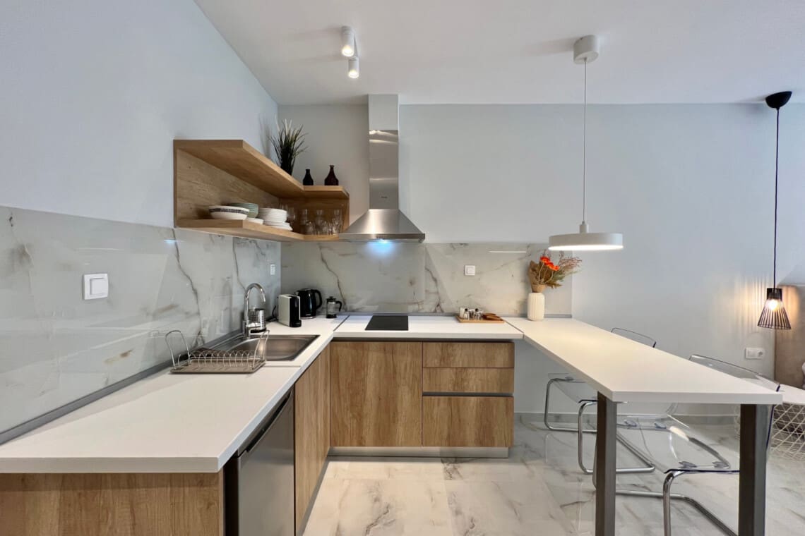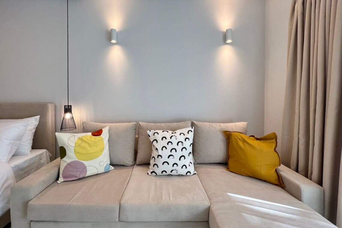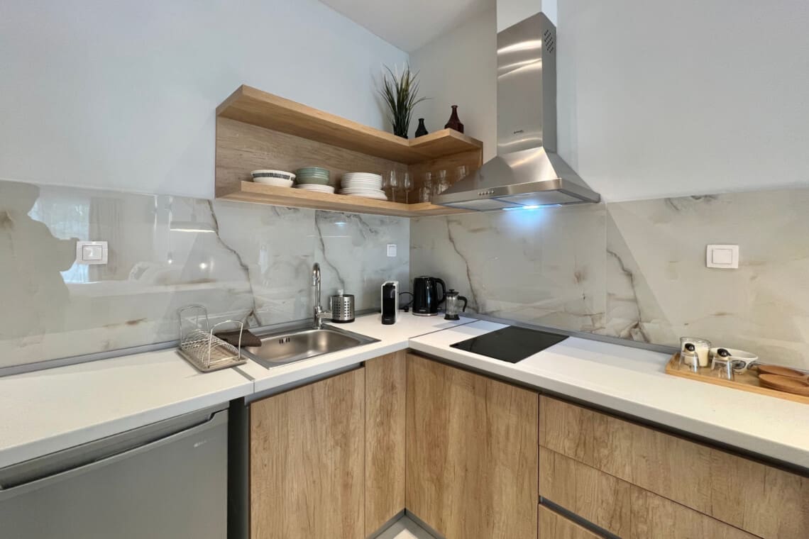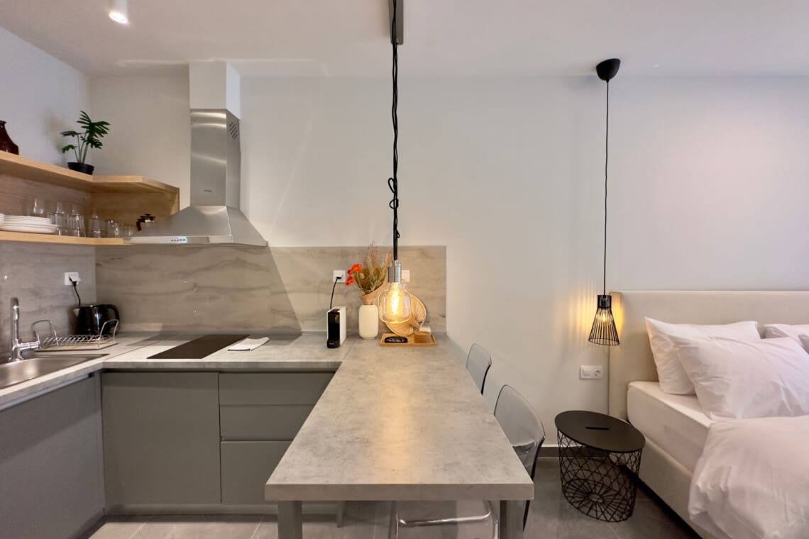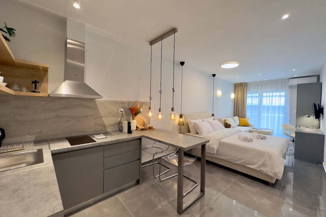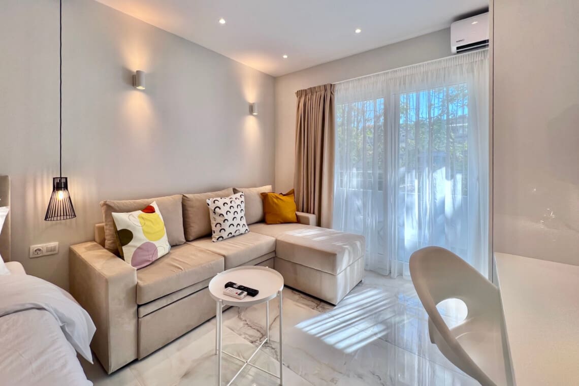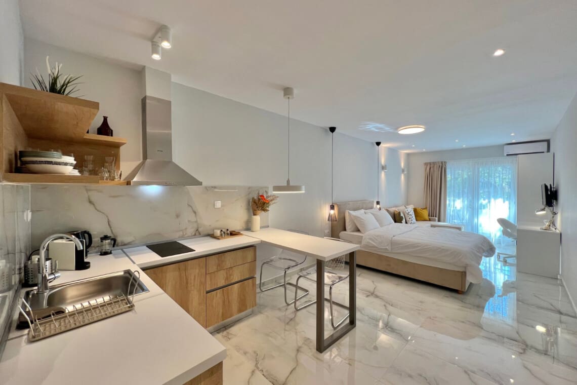 Η σουίτα διαθέτει σαλόνι, ιδανικό για χαλάρωση. Βυθιστείτε στον άνετο καναπέ και παρακολουθήστε τις αγαπημένες σας εκπομπές στην τηλεόραση. Το διαμέρισμα προσφέρει επίσης ένα καλά εξοπλισμένο κουζινάκι, με όλα όσα χρειάζεστε για να ετοιμάσετε ένα νόστιμο γεύμα ή τον πρωινό σας καφέ.