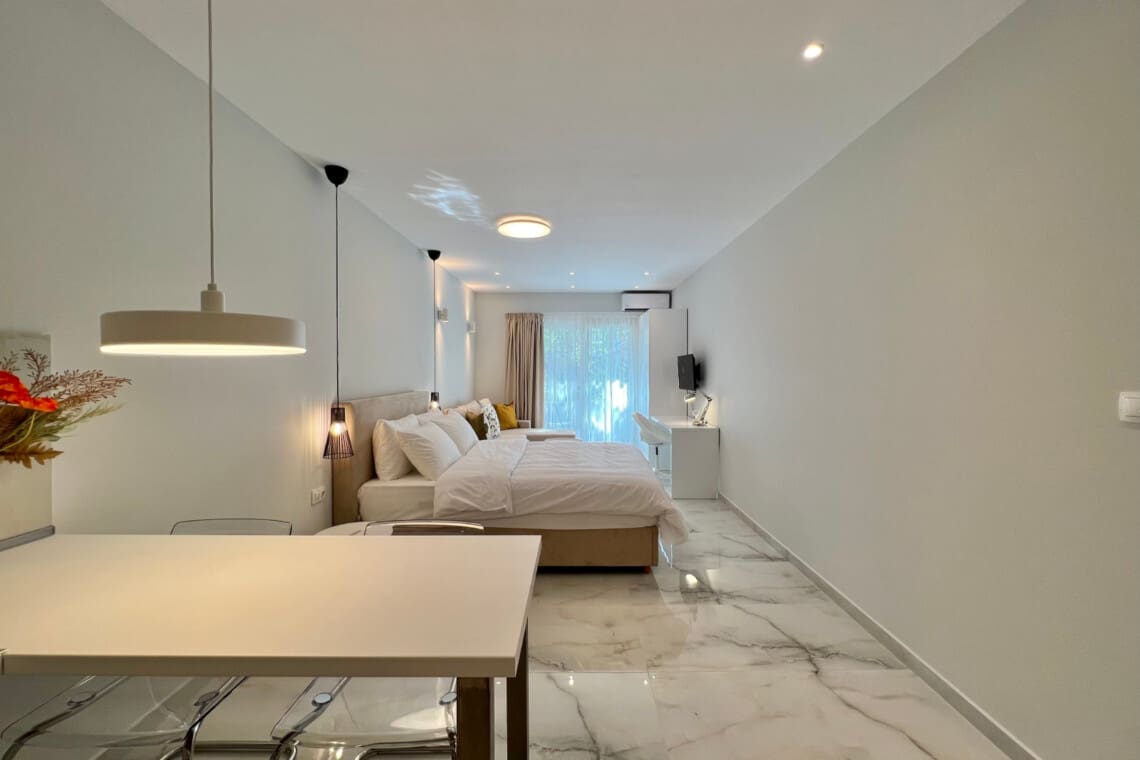 28+ διανυκτερεύσεις: The guest can cancel free of charge until 14 days before arrival (minus any transfer costs 1-3%). The guest will be charged 50% of the total price if they cancel within 14 days of arrival. If the guest doesn’t show up, they’ll be charged the total price of the reservation.