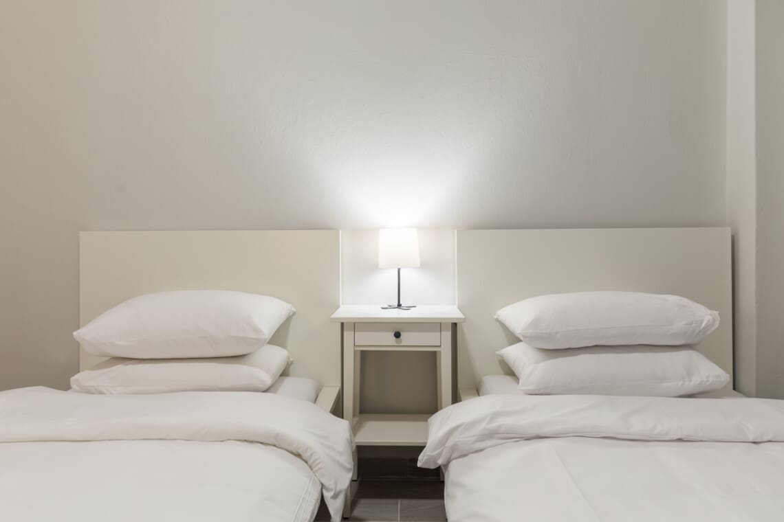 Το διαμέρισμα διαθέτει δύο φιλόξενα υπνοδωμάτια προσαρμοσμένα για να εξασφαλίσουν μια ξεκούραστη νύχτα. Το πρώτο υπνοδωμάτιο προσφέρει ένα άνετο διπλό κρεβάτι ιδανικό για ζευγάρια, ενώ το δεύτερο υπνοδωμάτιο διαθέτει δύο μονά κρεβάτια, ιδανικό για φίλους ή παιδιά. Και τα δύο δωμάτια είναι εξοπλισμένα με φρέσκα κλινοσκεπάσματα και γαλήνιο φωτισμό για την άνεσή σας.