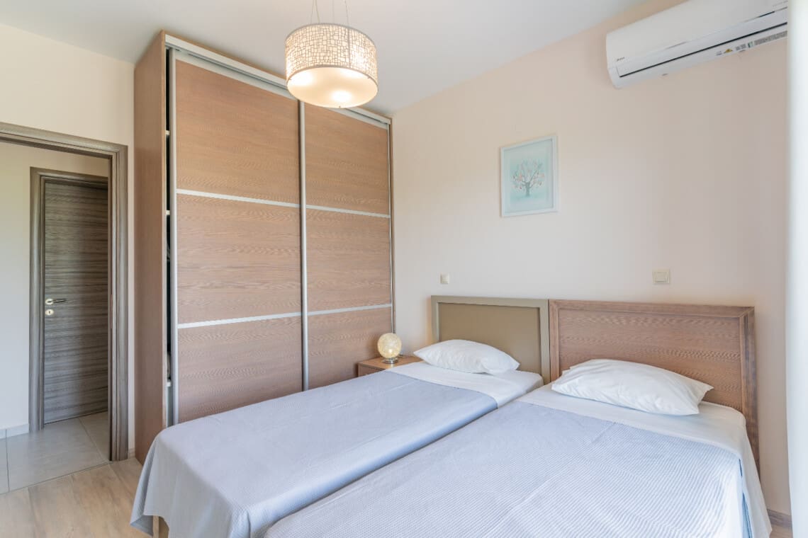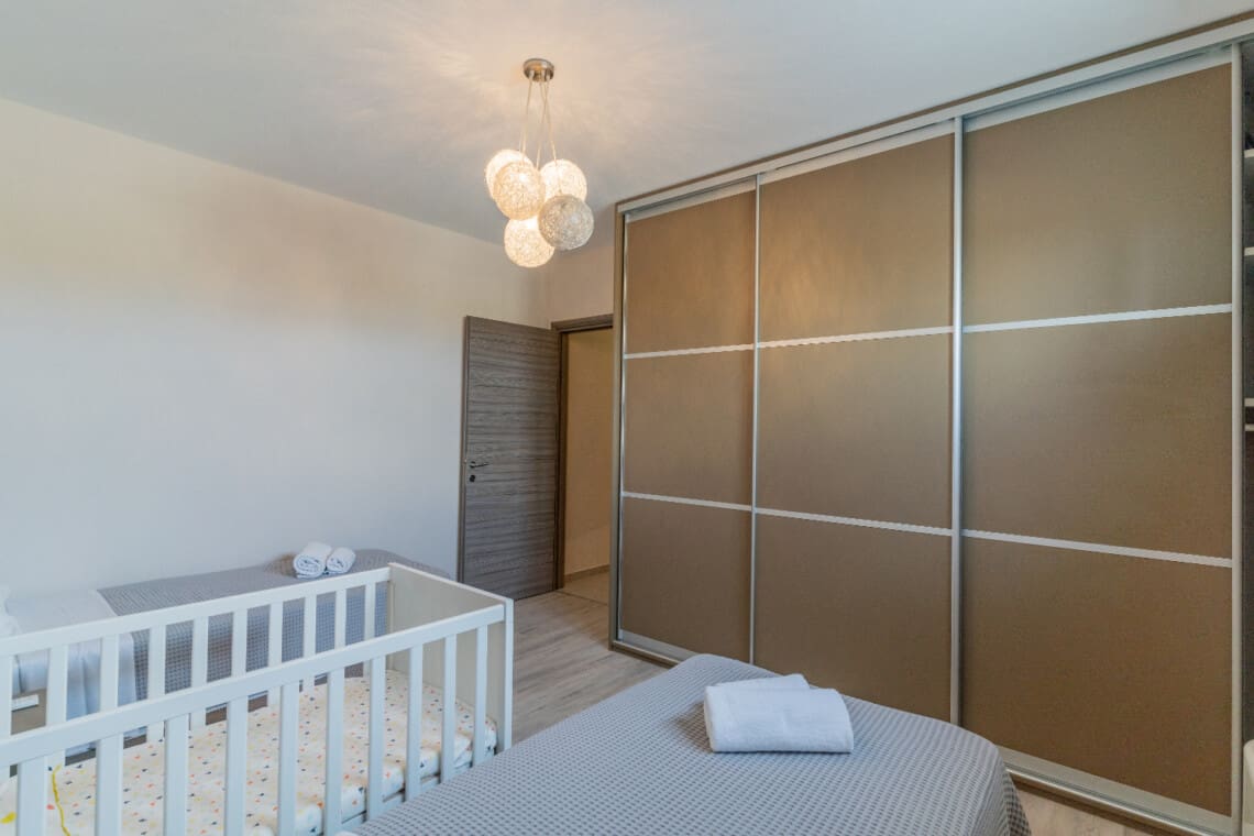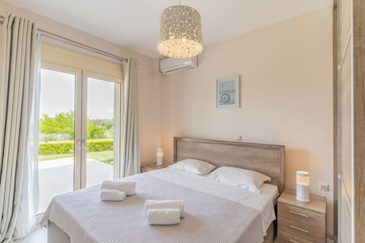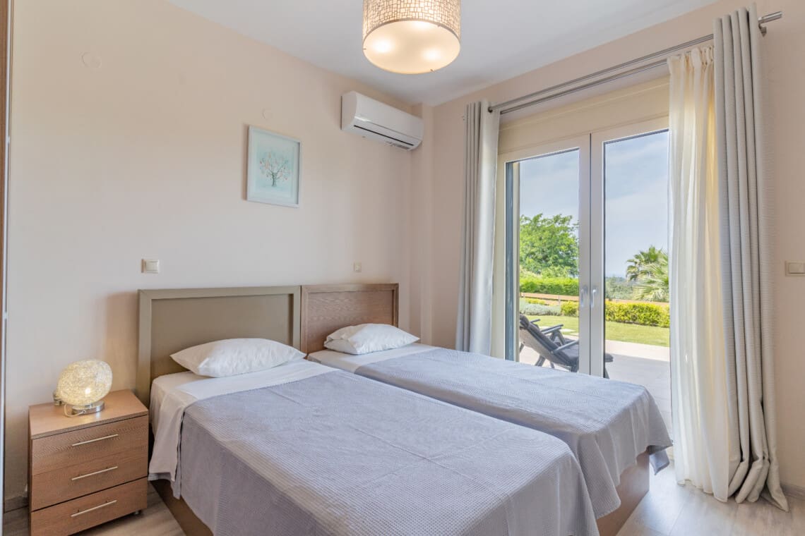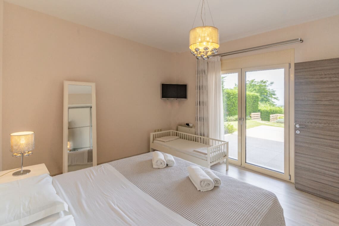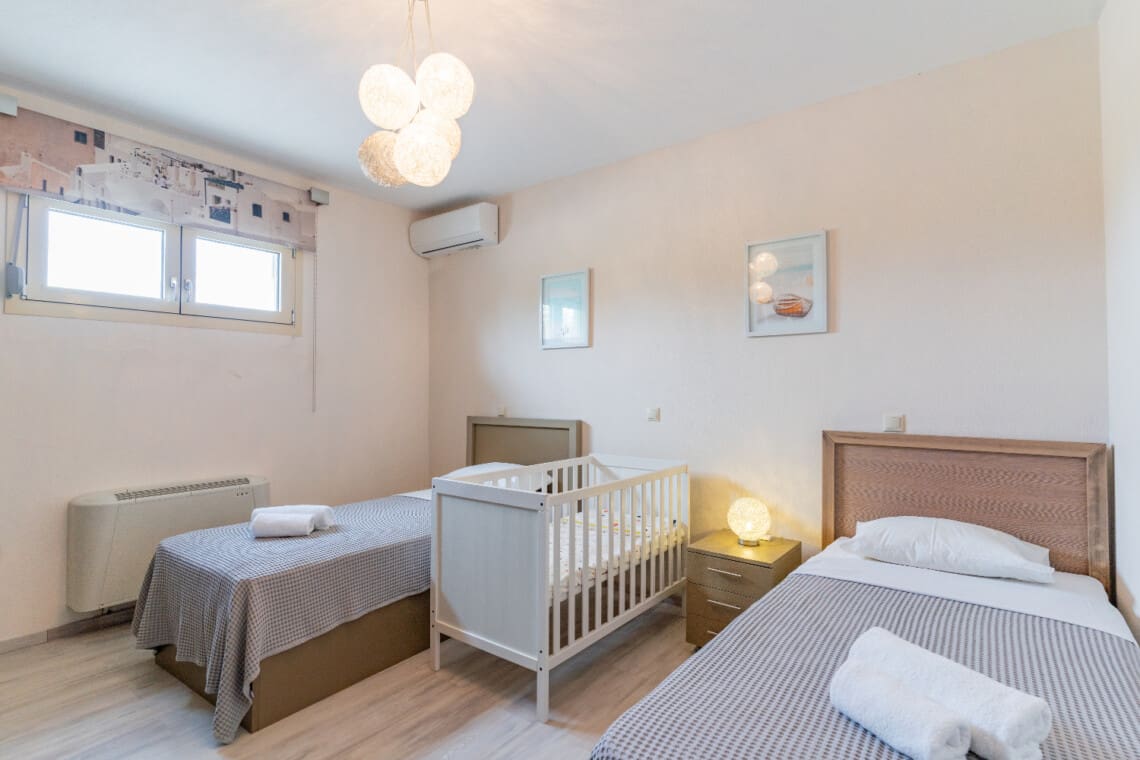 Με χωρητικότητα έως 10 άτομα, η πολυτελής βίλα μας 220μ² διαθέτει 5 υπνοδωμάτια στο ισόγειο, το καθένα όμορφα επιπλωμένο είτε με ένα king-size κρεβάτι είτε με δύο μονά κρεβάτια, καθώς και μια ντουλάπα για την εξυπηρέτησή σας. Όλα τα μονά κρεβάτια μπορούν να συνδεθούν για να δημιουργήσουν ένα διπλό κρεβάτι. Δύο βρεφικές κούνιες είναι επίσης διαθέσιμες για τα μικρά της παρέας σας. Το ισόγειο διαθέτει επίσης 2 πλήρη μπάνια, διασφαλίζοντας ότι όλοι έχουν άφθονο χώρο για να ετοιμαστούν για μια μέρα περιπέτειας ή να χαλαρώσουν μετά από μια μέρα εξερεύνησης. Το δωμάτιο πλυντηρίων, με πλυντήριο ρούχων, σημαίνει ότι μπορείτε να πακετάρετε ελαφρύτερα και να κάνετε περισσότερο χώρο για αναμνηστικά!