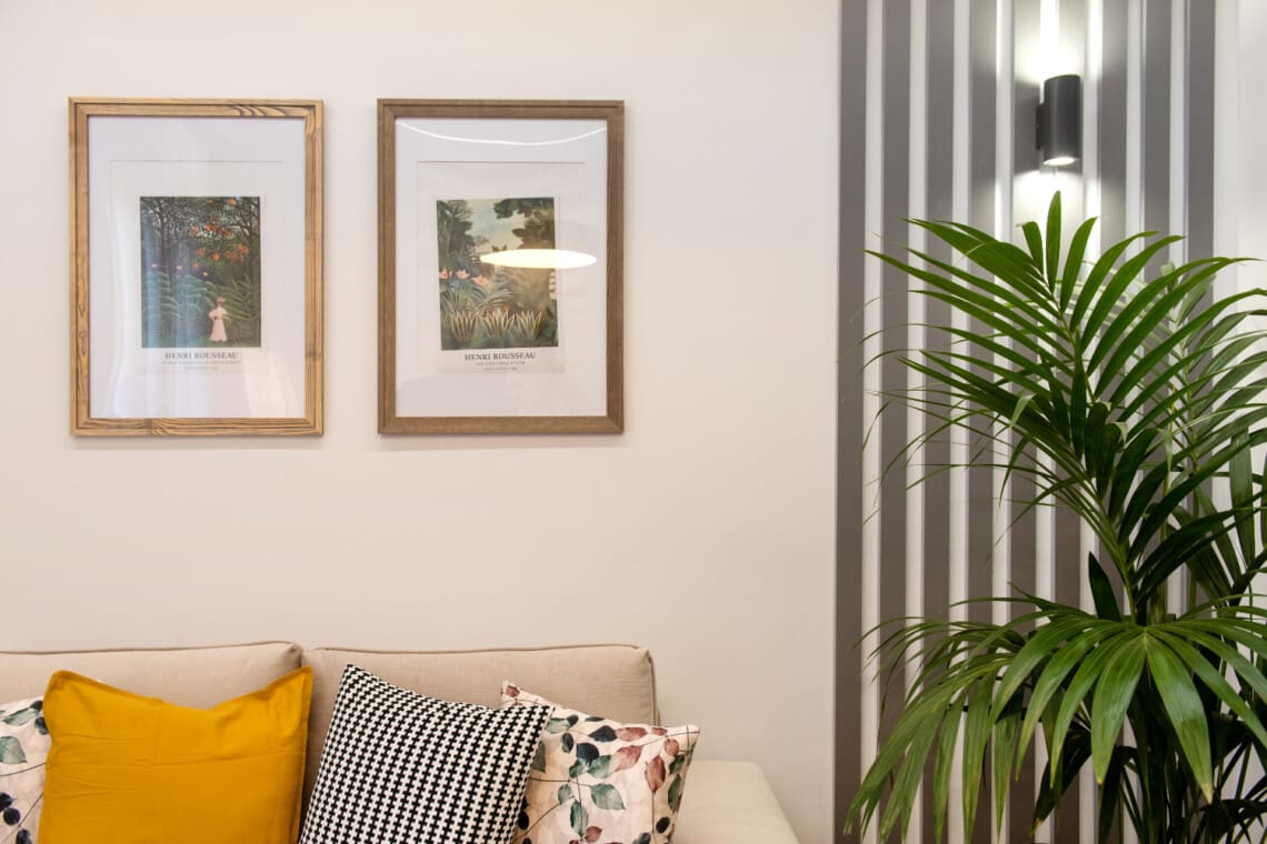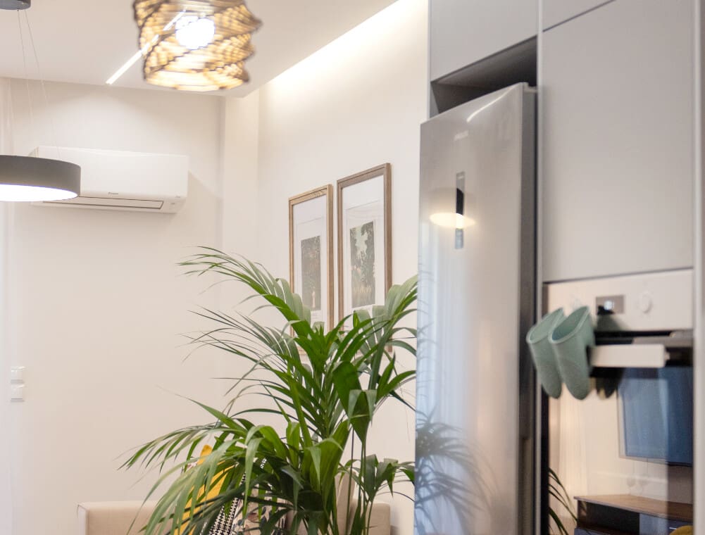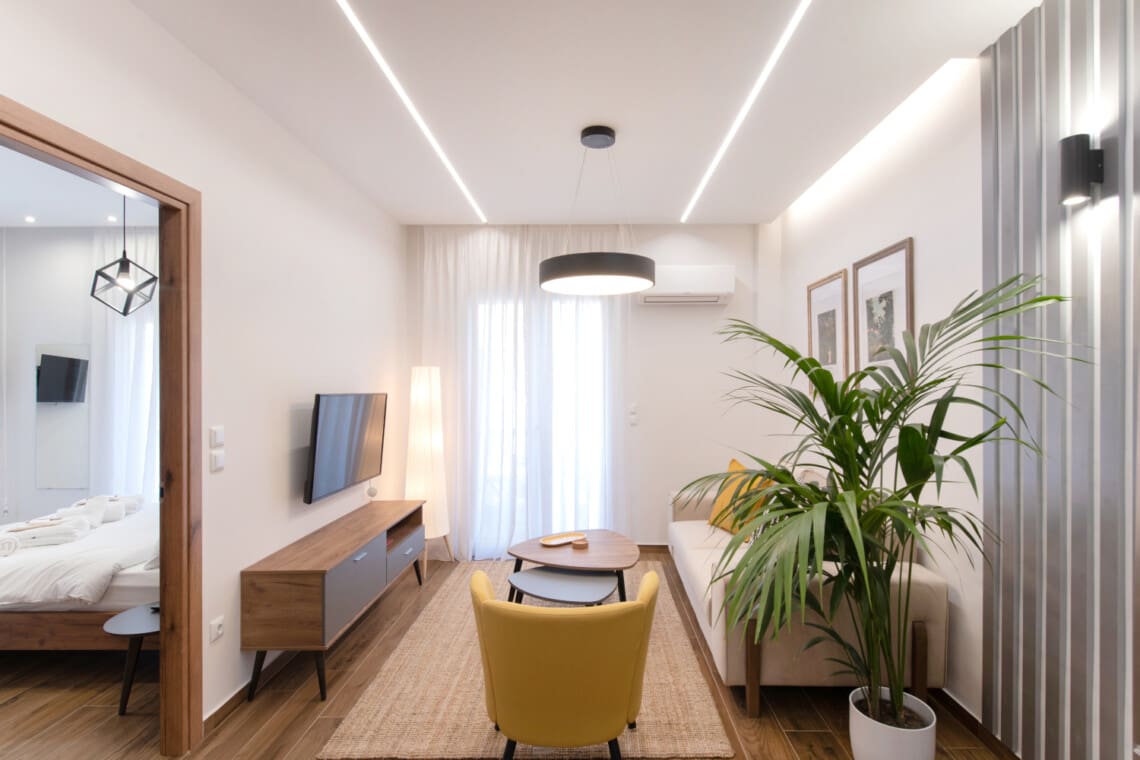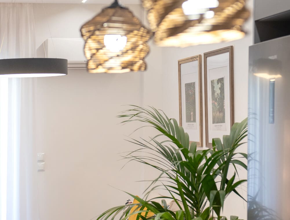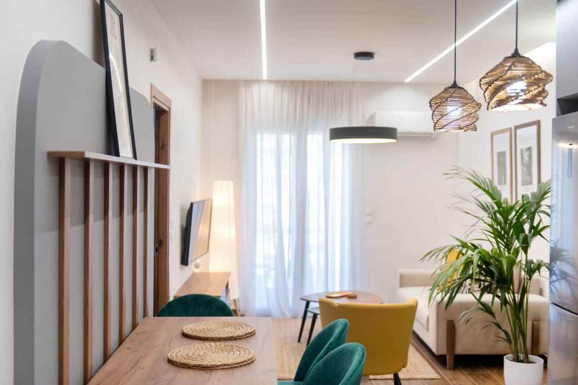 Το ευάερο σαλόνι σας γνέφει με μια υπόσχεση για γαλήνια απογεύματα που θα περάσετε βυθισμένοι σε ένα μαγευτικό βιβλίο ή μια ενδιαφέρουσα συζήτηση και μια βουτιά χρώματος που ανεβάζει το πνεύμα και αποπνέει μια σπιτική ατμόσφαιρα. Το διαμέρισμα τονίζεται από το φυσικό φως που πλημμυρίζει μέσα, δημιουργώντας μια αιθέρια ατμόσφαιρα ζεστασιάς και γοητείας.