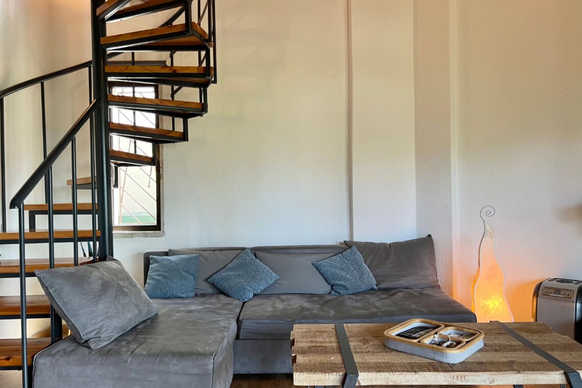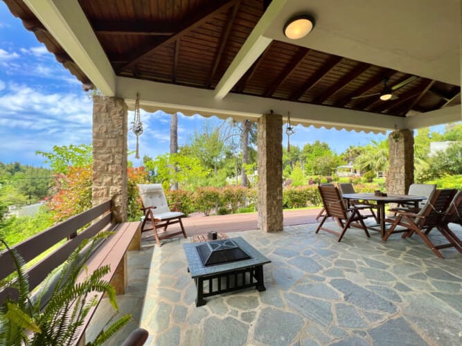 But there’s more! Dive into relaxation in not one, but two spacious living rooms, with the second perched on the upper floor, providing a perfect nook for reading, playing, or simply enjoying the serene views. Our relaxing villa has 2 modern bathrooms come equipped with rainfall shower heads, adding a touch of luxury to your refreshment times. Culinary enthusiasts will be delighted with our full kitchen, seamlessly connecting to the dining area, ensuring you have everything you need to whip up delightful meals with local produce. Step outside to the veranda and discover a delightful outdoor dining area for 6, perfect for enjoying meals under the warmth of the Greek sun or the stars. For the grill masters, our outdoor BBQ awaits, promising memorable evenings of delicious feasting.