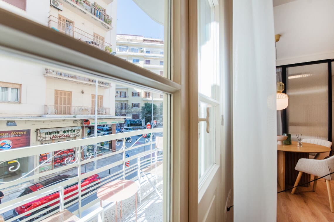 Ένα από τα κυριότερα σημεία του διαμερίσματός μας είναι το μπαλκόνι που προσφέρει εκπληκτική θέα στο μπροστινό μέρος του κτιρίου. Βγείτε έξω, πάρτε μια βαθιά ανάσα και αφήστε τη φασαρία της πόλης να σας ενεργοποιήσει καθώς σχεδιάζετε τη μέρα σας ή απλά απολαμβάνετε ένα φλιτζάνι καφέ στον πρωινό ήλιο.