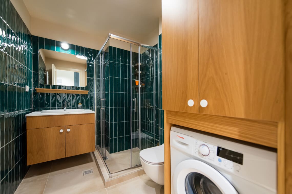 Καθώς μπαίνετε μέσα, θα σας υποδεχτεί μια γαλήνια ατμόσφαιρα και ένα φιλόξενο Queen size κρεβάτι στην κρεβατοκάμαρα, εξασφαλίζοντας έναν ήσυχο βραδινό ύπνο. Το σαλόνι προσφέρει έναν χαλαρωτικό χώρο για να ξεκουραστείτε, ενώ η πλήρης κουζίνα σας επιτρέπει να προετοιμάσετε τα αγαπημένα σας γεύματα και σνακ με την άνεσή σας.