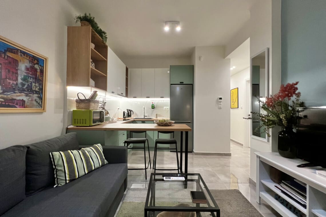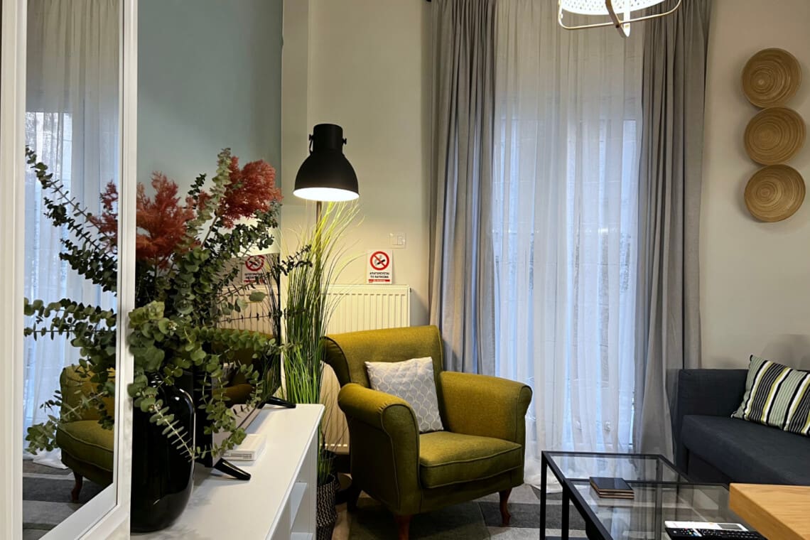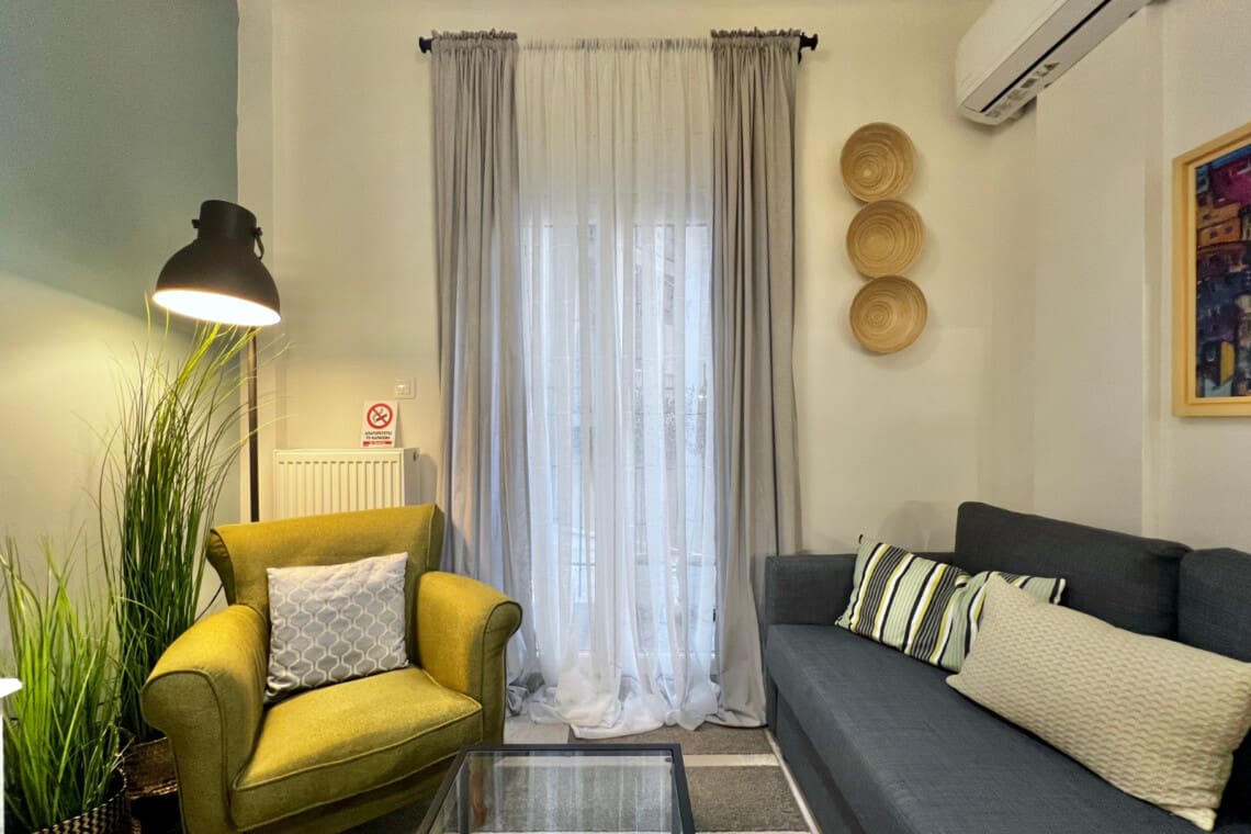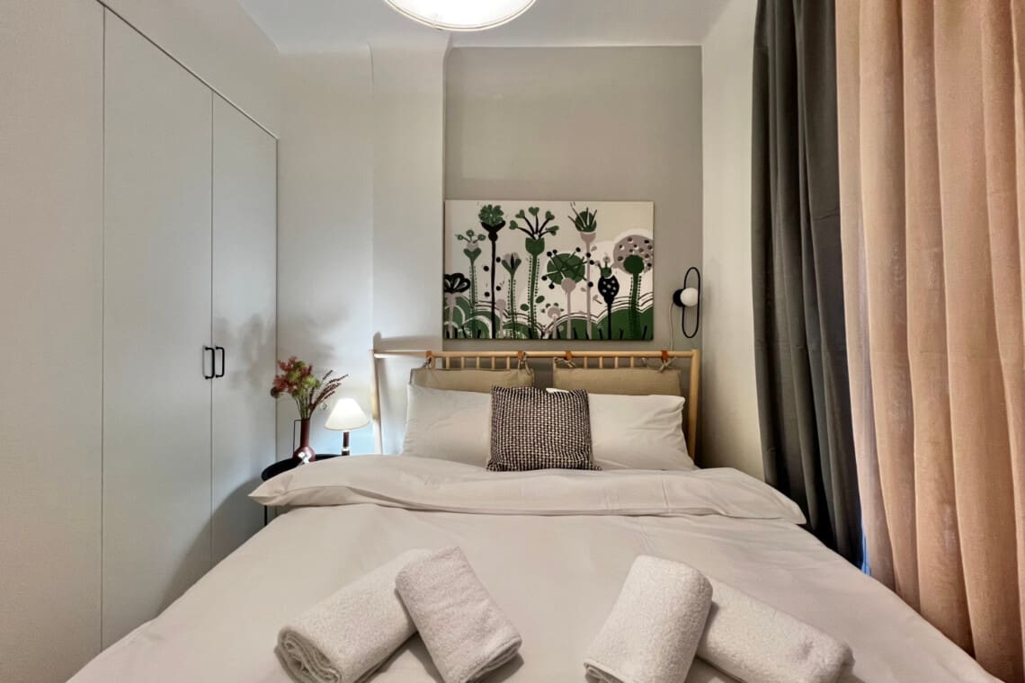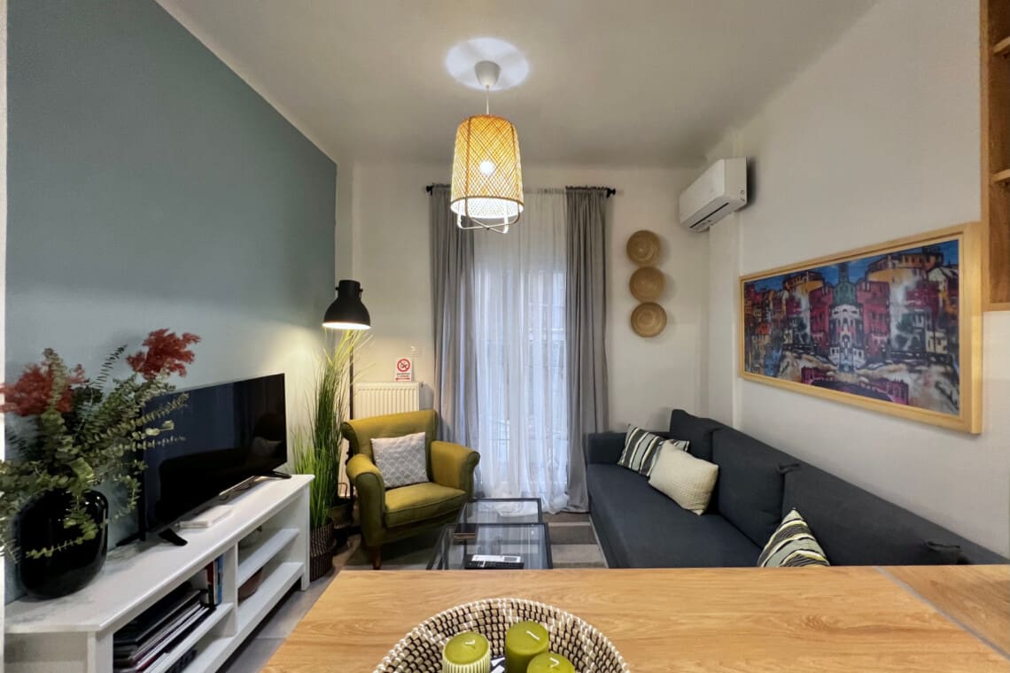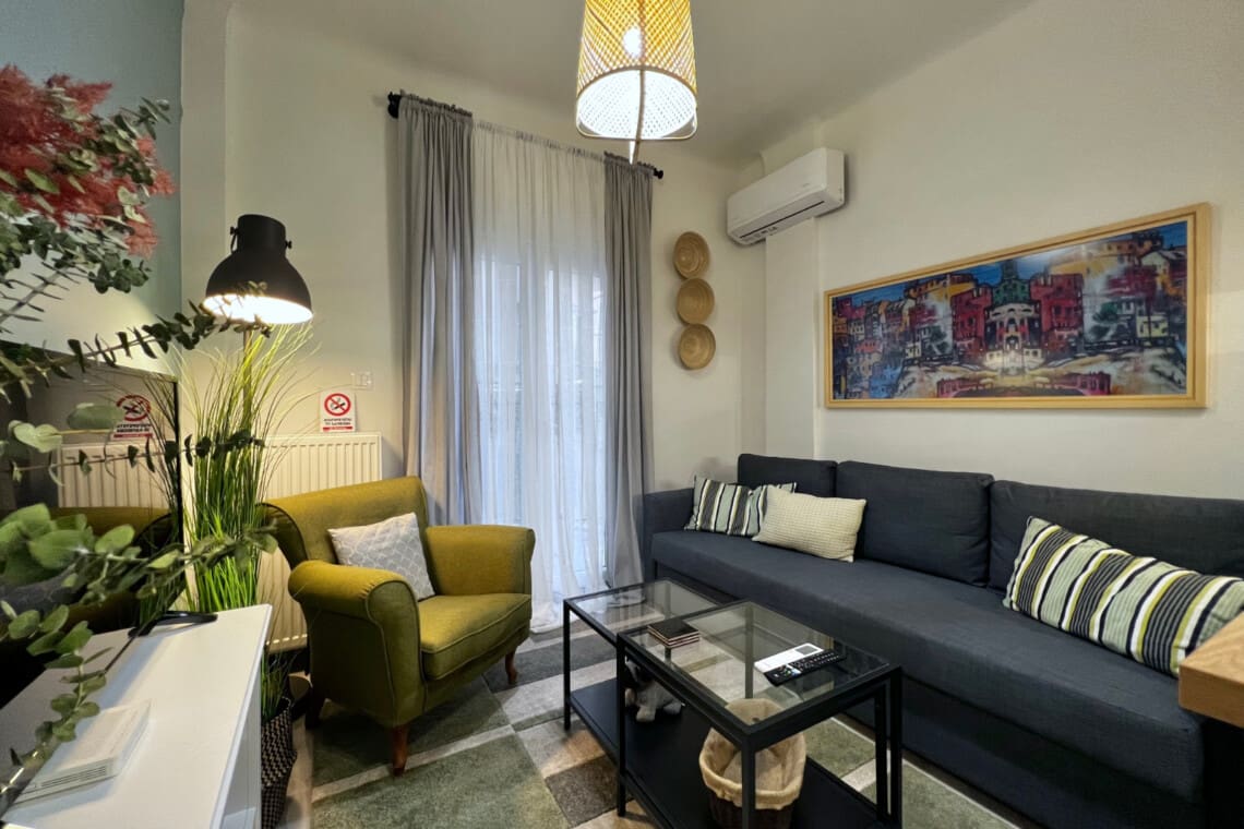 Nestled in the heart of Thessaloniki, our one-bedroom apartment provides a warm, inviting space where you can relax and recharge. The bedroom features a comfortable queen-size bed, ensuring a good night’s sleep after a day of exploration.