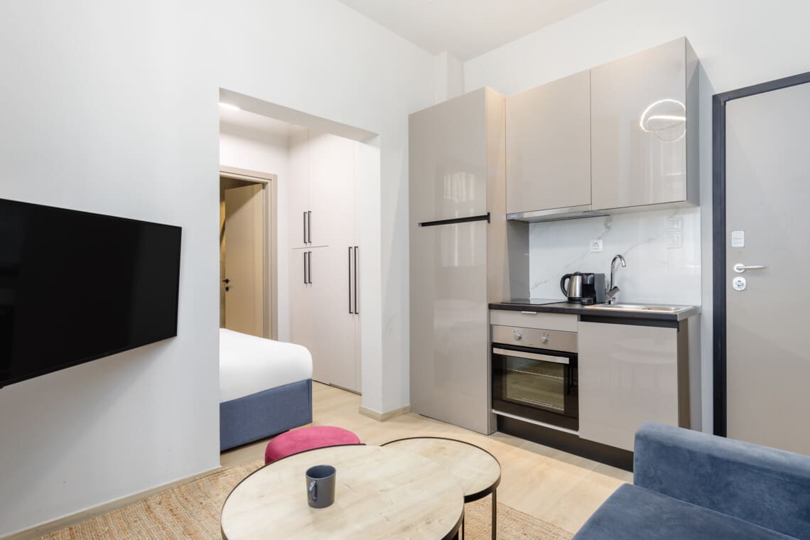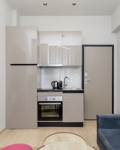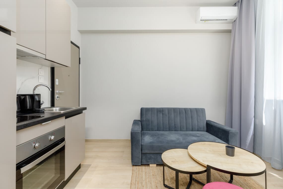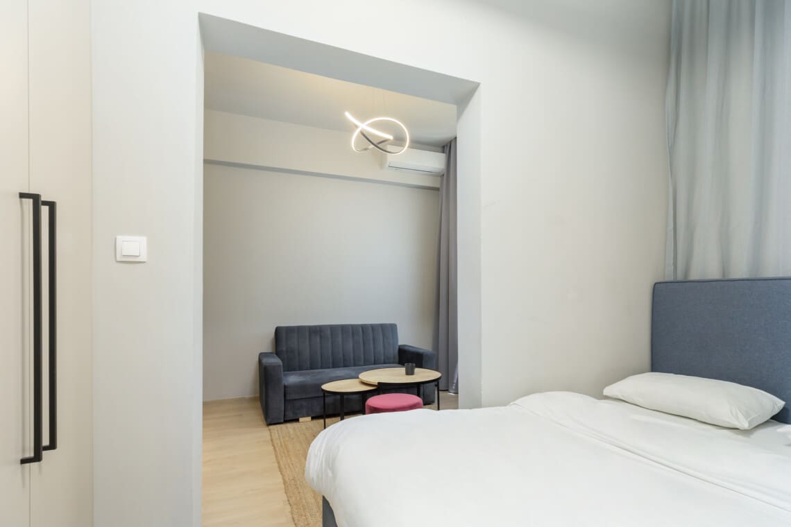 Welcome to our stylishly decorated studios located in the heart of Thessaloniki’s vibrant Ladadika area. As soon as you walk in, you’ll notice the modern design, attention to detail, and high-quality furnishings.