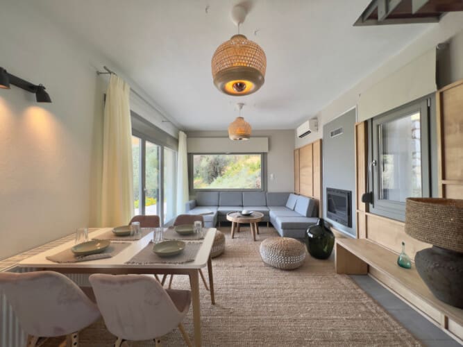 Our villa boasts a beautifully decorated living room, providing the ideal space to unwind after a day of adventures. Whether you choose to cozy up on the couch and watch a movie or gather around the dining table for a delicious meal, our living area is designed to be the hub of relaxation and bonding.