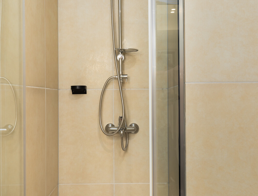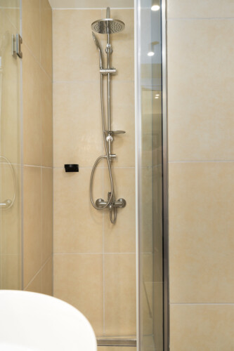 The full kitchen includes all cooking basics and a kettle, ideal for preparing meals or simple breakfasts at your own pace. Step out onto the private balcony to enjoy your coffee or a glass of wine in the open air.