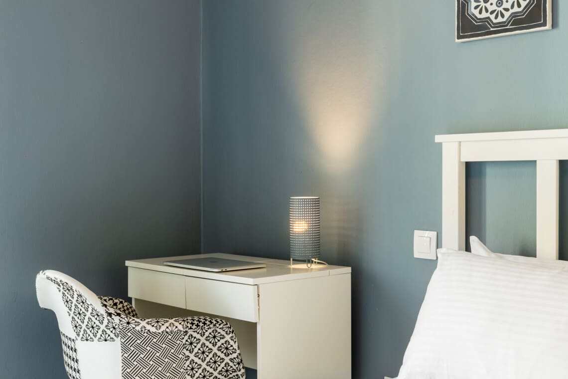 The living room is perfect for unwinding after a busy day of exploring the city, with plenty of space for everyone to relax. And when it’s time to eat, the fully equipped kitchen is perfect for preparing delicious meals, with everything you need to cook up a storm. There’s also a sunny balcony facing Paleon Patron street, perfect for enjoying a cup of coffee or tea while soaking up the vibrant energy of the city.