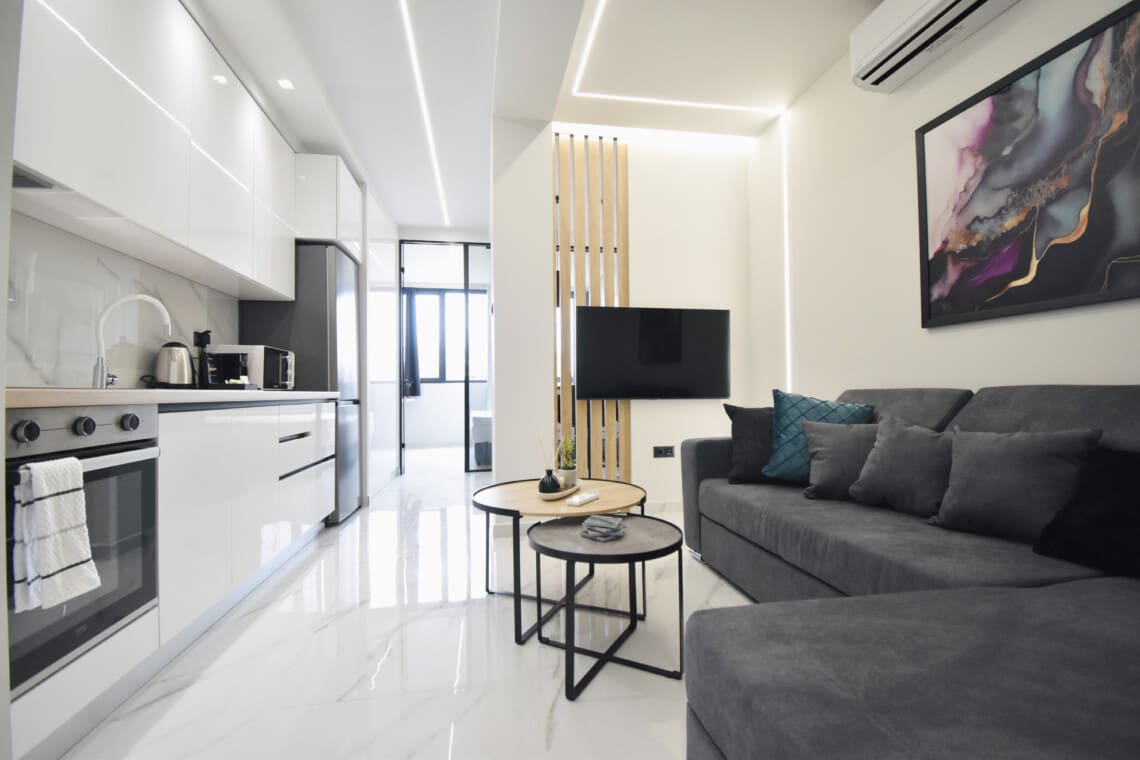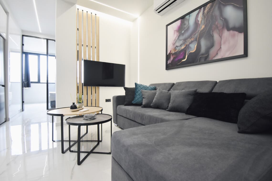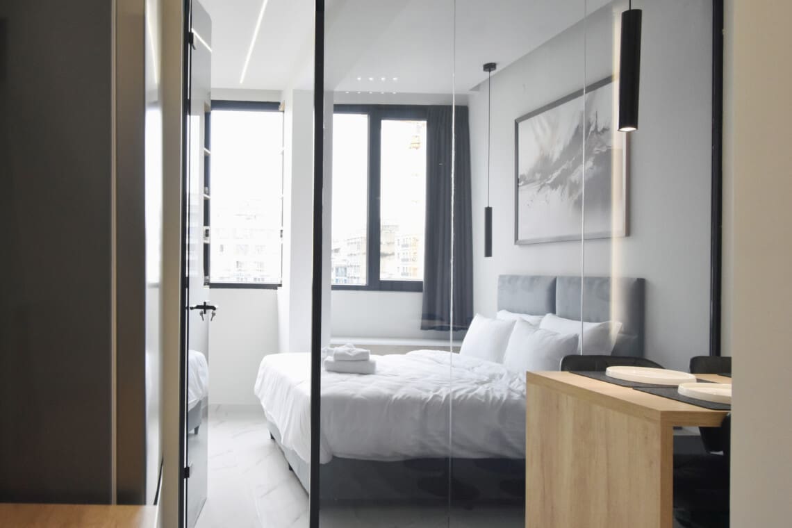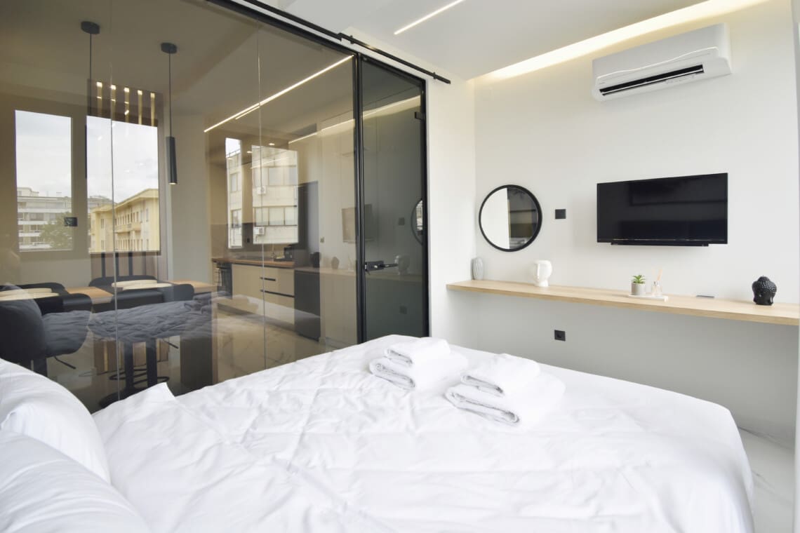 Our apartment features a window wall, flooding the space with natural light and offering a lovely view of the lively neighborhood. Step outside and you’re in the heart of Thessaloniki! You’re just a short walk away from trendy cafes, delicious restaurants, and popular attractions. We’ve thought of everything to make your stay as comfortable as possible. From high-speed Wi-Fi to air conditioning, you’ll feel right at home.