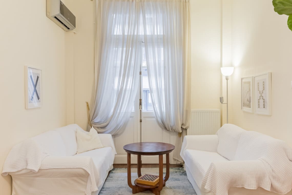 Welcome to our neoclassical apartment in the heart of Thessaloniki city center, where the perfect combination of historical charm and modern amenities meet. This three-bedroom gem offers families and small groups a warm and cozy home-away-from-home experience.