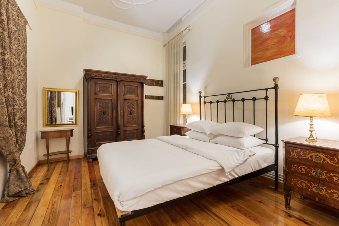As you step inside, you’ll be greeted by an elegant and timeless neoclassical design that will transport you back in time to Thessaloniki’s fascinating history. From the beautiful parquet floors to the intricate details in the moldings and furniture, every corner of our apartment exudes a unique charm that will make your stay unforgettable.