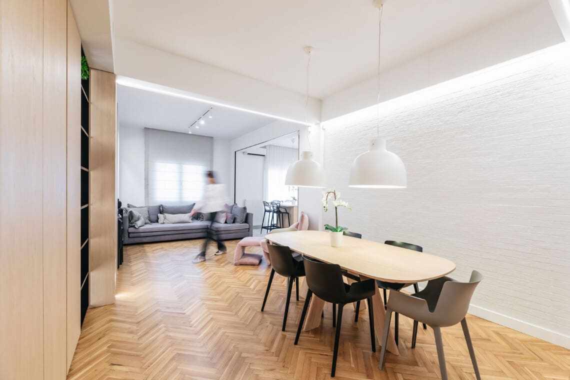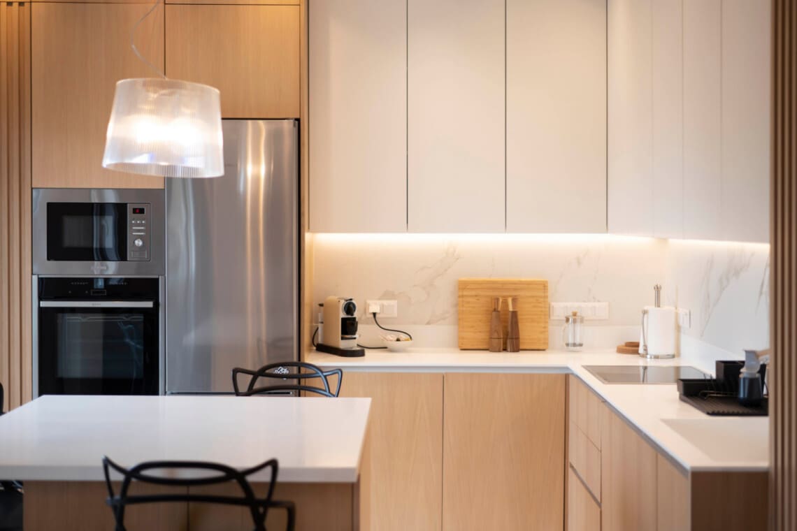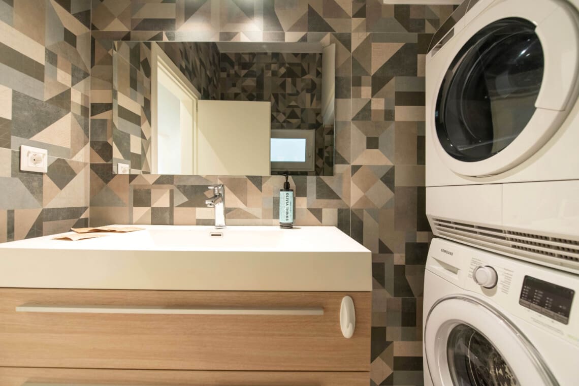 If you’re looking for something unique, our apartment has a contemporary design with pop art touches. Wooden panels and hidden lights create a bright and cozy atmosphere, perfect for those looking for a stylish and comfortable stay.