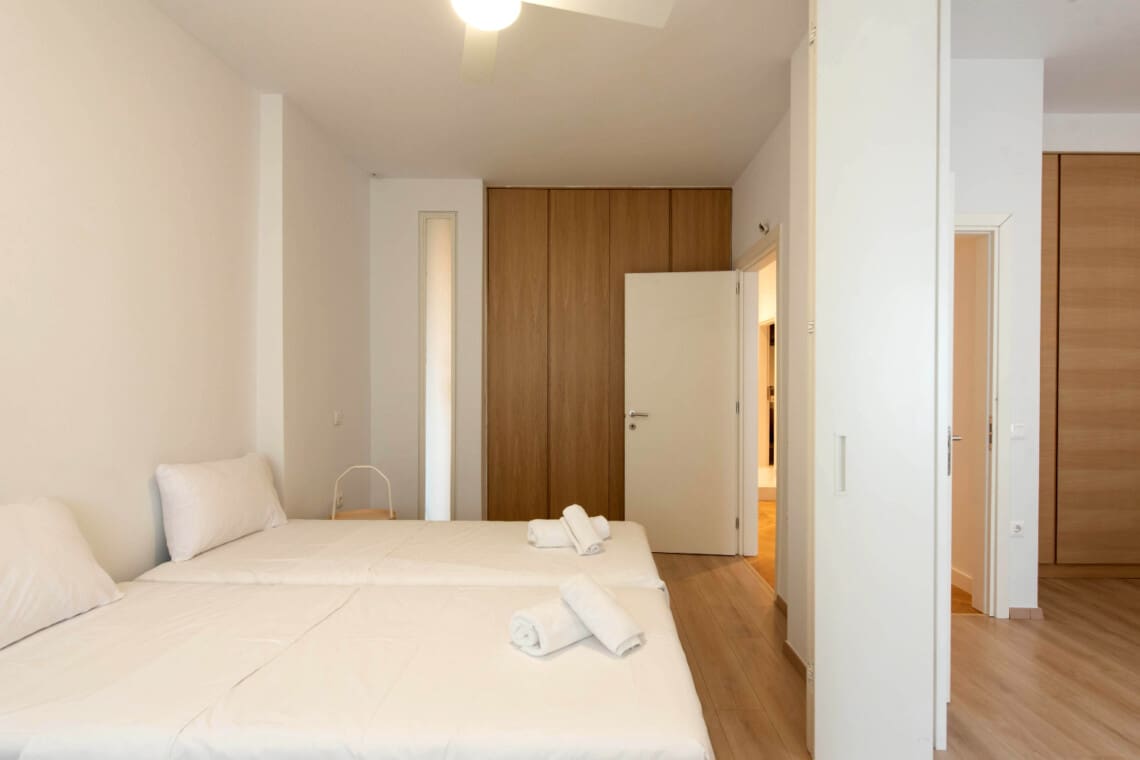 The apartment boasts 3 bedrooms – the first with a double bed and an en suite walk-in closet, the second with a double bed, and the third with 2 single beds. With plenty of space, you will have plenty of room to spread out and relax.