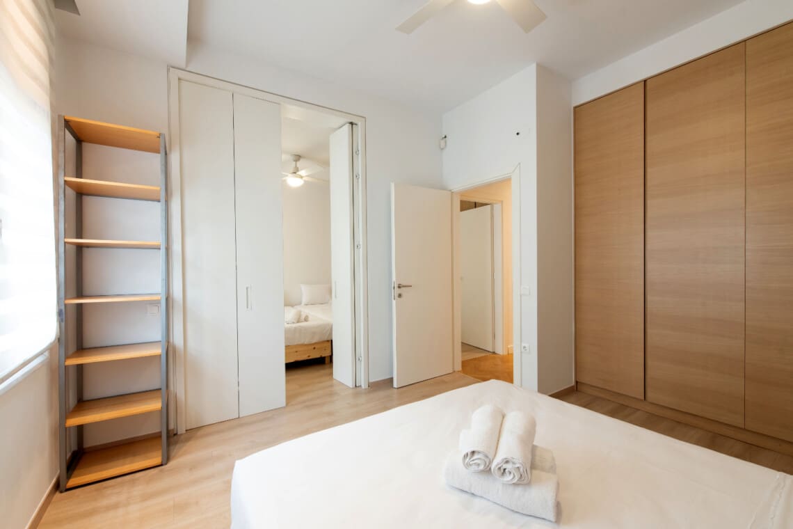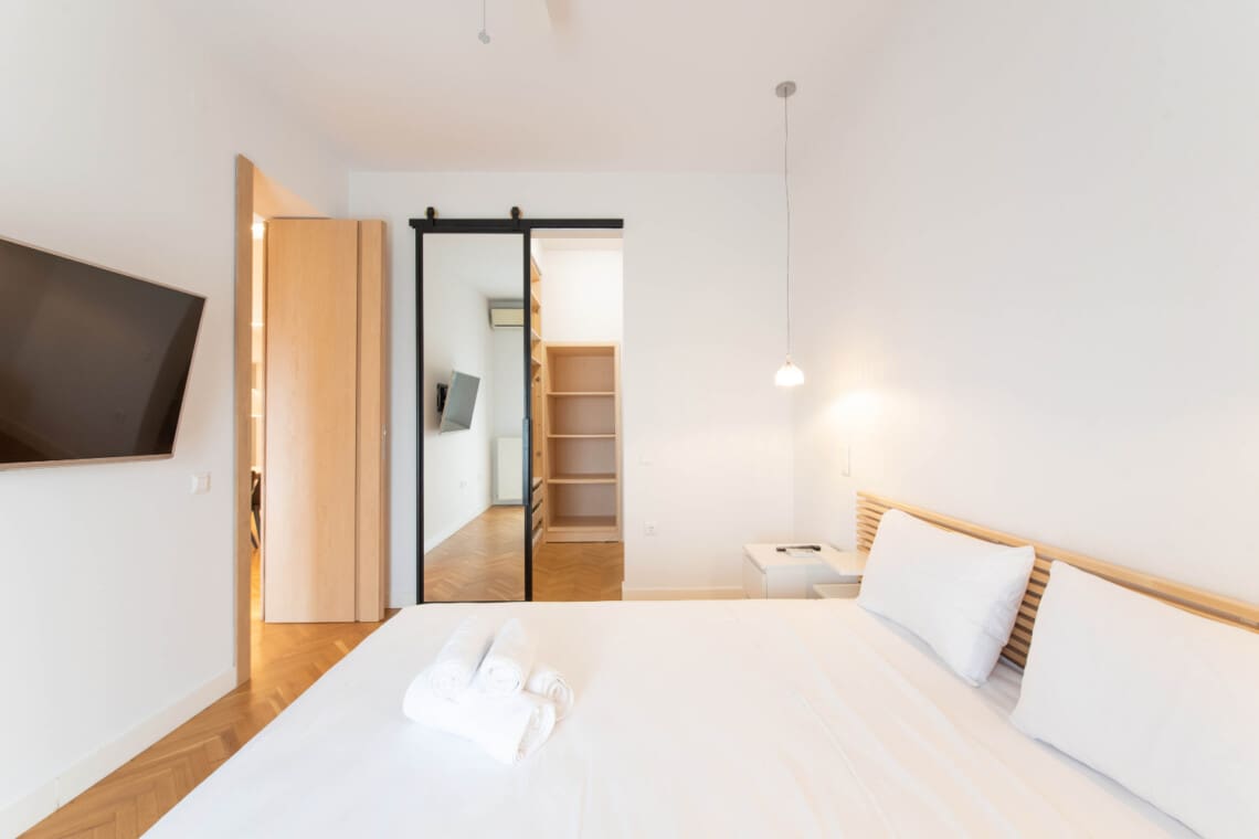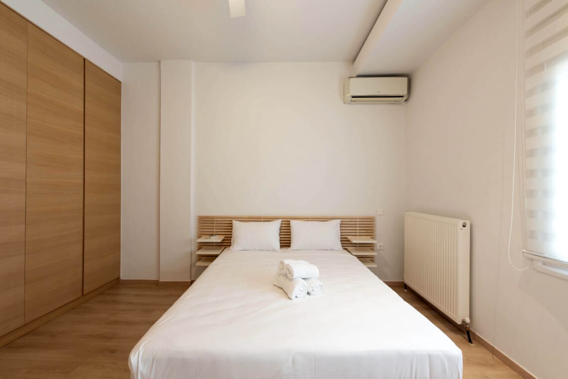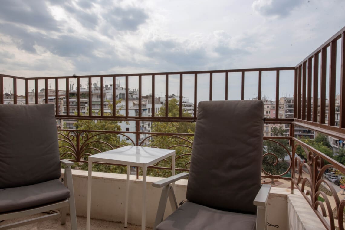 It also has a balcony that faces the front of the building, with a view on Makedonomachon Avenue and the Agias Sofias Avenue. It’s the perfect spot to enjoy a morning cup of coffee or to relax with a glass of wine after a long day exploring the city.