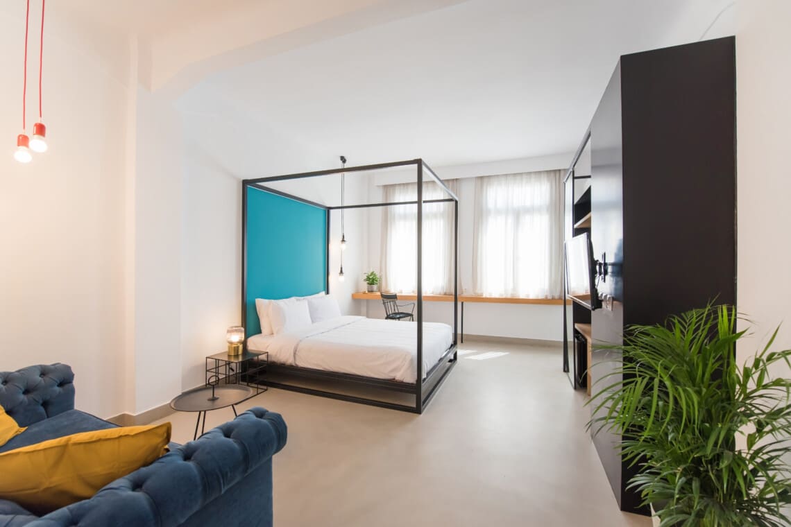Welcome to MONK Suites in the heart of Athens, located in the vibrant neighborhood of Monastiraki. As you step into our suite, you will instantly feel the warm and inviting ambiance that makes it a perfect choice for couples and solo travelers.
