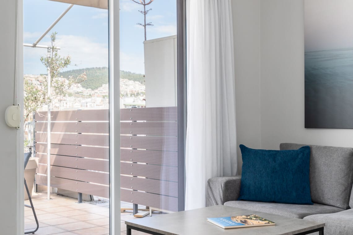 One of the best things about our suite is the balcony that faces the front of the building, providing you with a stunning view of the bustling city. Sip your morning coffee or enjoy a glass of wine as you take in the vibrant sights and sounds of Thessaloniki.