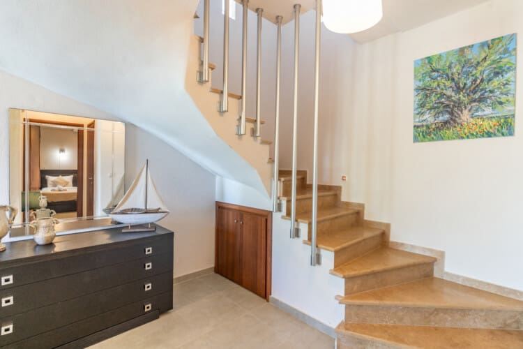 As you ascend to the first floor, you will be delighted to find two beautifully appointed bedrooms each with a King size bed. You will also find one full bathroom, and a balcony with breathtaking views. All the rooms have air conditioning units to ensure that you stay cool and comfortable during the hot summer months.
