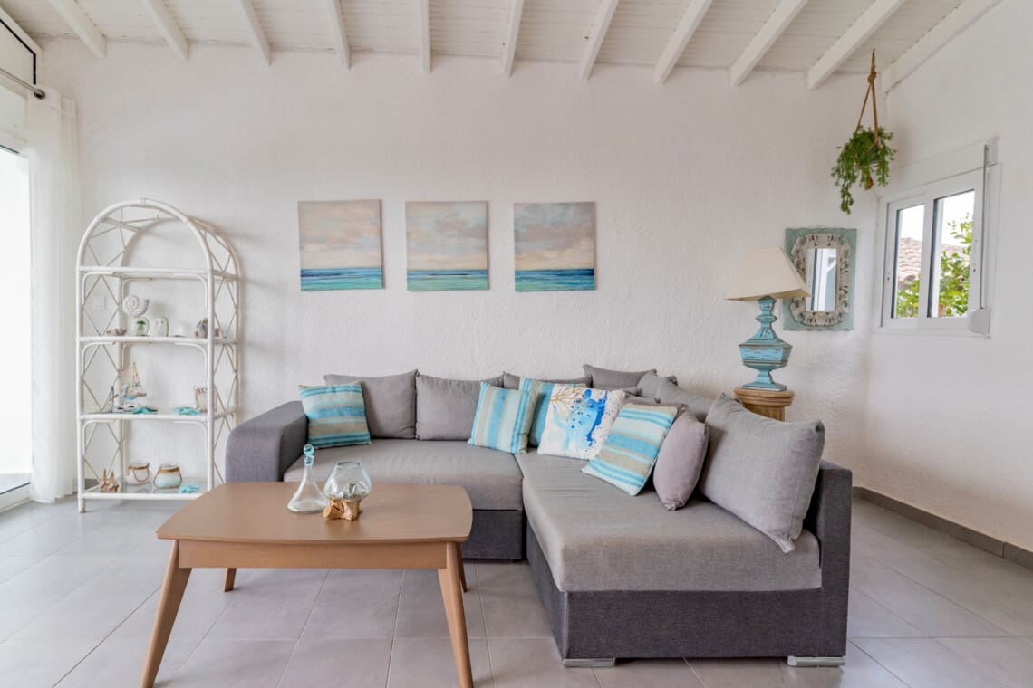 Our villa comfortably sleeps up to 4 guests in 2 beautifully decorated bedrooms, each boasting a comfortable queen-size bed. Wake up to the soothing sounds of the waves in the master bedroom, which also features an ensuite bathroom for added privacy and convenience. Enjoy the open-plan living room, designed for relaxation and quality time with loved ones. The space is bathed in natural light, offering serene sea views that promise to captivate. The full kitchen is equipped with everything you need to prepare delicious meals. Step outside to the veranda, where you’ll find a lovely dining area perfect for alfresco meals while soaking up the stunning seaside ambiance. A modern bathroom complete with a rainfall showerhead ensures all guests can refresh and rejuvenate in comfort. Savor the mesmerizing sunsets from the privacy of your veranda, an ideal spot for memorable dinners or simply unwinding with a good book. Benefit from the convenience of free street parking around the property, making exploring the surrounding area hassle-free.