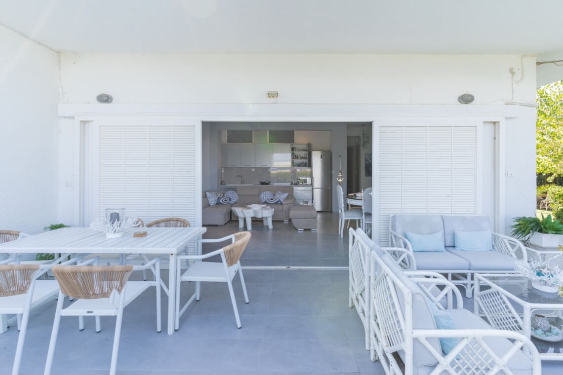 Discover the ultimate retreat for families and small groups seeking an unforgettable seaside escape. Nestled in the picturesque village of Nea Fokaia in the heart of Halkidiki, our beautiful villa offers breathtaking sea views, creating a serene and idyllic setting for your next vacation. Wake up to the soothing sounds of the waves and enjoy the panoramic sea views from the comfort of our villa, located directly in front of the sea.