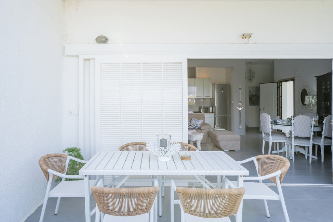 The villa boasts 3 cozy bedrooms, each equipped with a comfortable queen size bed, ensuring a restful sleep for up to 6 guests. The master bedroom comes with the added luxury of an ensuite bathroom. Enjoy the convenience of 2 modern bathrooms. The villa also includes a fully equipped kitchen and a connecting dining area, perfect for preparing and enjoying meals together. Take in the stunning seaside views from our veranda, complete with a dining area for 6 people. Free street parking is available around the property, making it easy for you to explore the area at your leisure.
