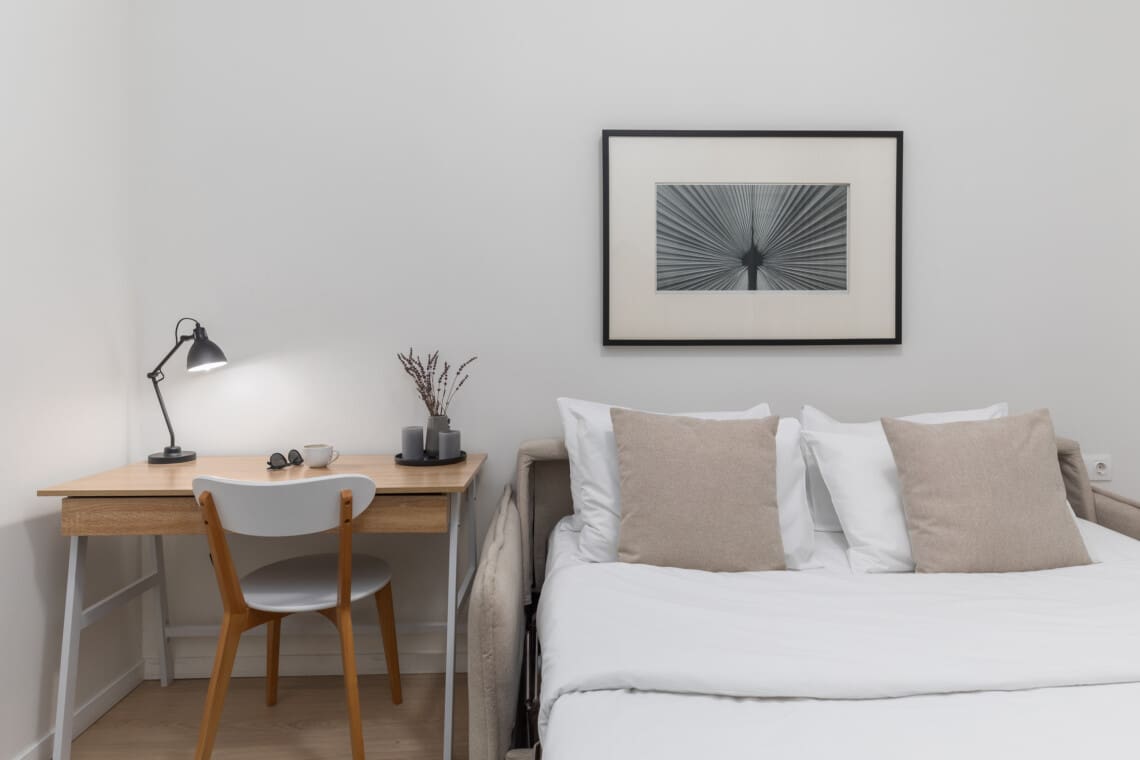 The master bedroom features a comfortable queen bed, perfect for a good night’s rest after a long day of sightseeing. The second bedroom boasts a cozy double sofa bed, ideal for small groups or families traveling with children. Our apartment also includes a living room, full kitchen, and bathroom to ensure you have all the amenities you need for a comfortable stay.