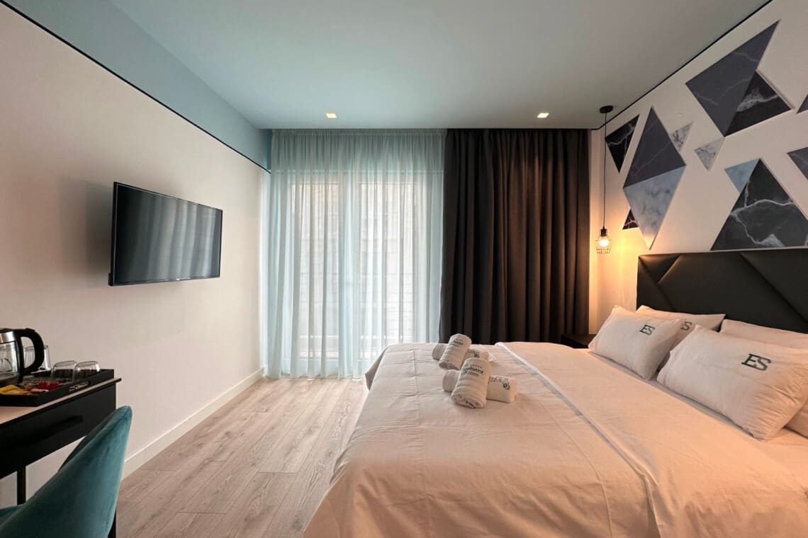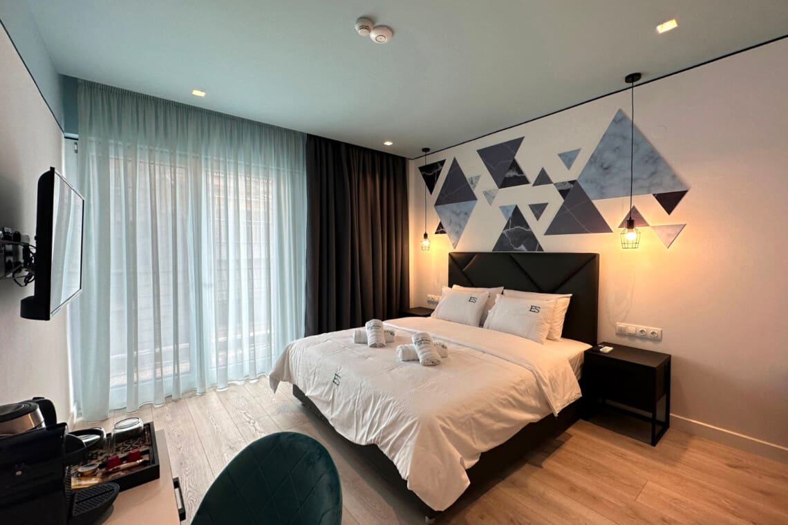 Located just a stone’s throw away from the railway station and the vibrant One Salonica mall, our suite boasts an ideal location for all your travel needs. Immerse yourself in the city’s bustling energy and discover the numerous shops, boutiques, and restaurants within easy reach.