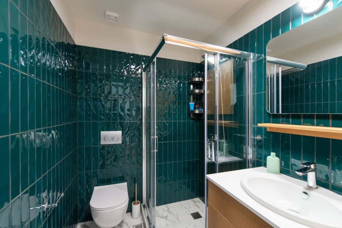 Prepare delicious homemade meals in our fully equipped kitchen, complete with all the necessary amenities to make your stay convenient and enjoyable. Enjoy your meals together in the dining area or take advantage of the charming balcony facing the front of the building, where you can savor your morning coffee while taking in the lively atmosphere of the neighborhood.